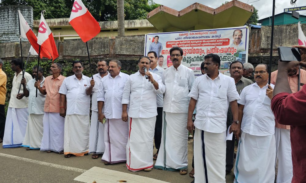 പാലാ -അരുണാപുരം ബൈപ്പാസിലെ വിവാദ കെട്ടിടം പൊളിച്ച് മാറ്റുക:കേരളാ കോൺഗ്രസ് (ബി) ജനകീയ കൂട്ടായ്മ നടത്തി