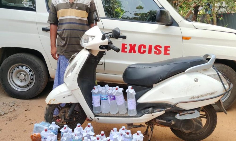 സ്കൂട്ടറിൽ ചാക്കിലാക്കിയ നിലയിലാണ് 32 പ്ലാസ്റ്റിക് കുപ്പികളിലായി സൂക്ഷിച്ച ചാരായം പിടികൂടി