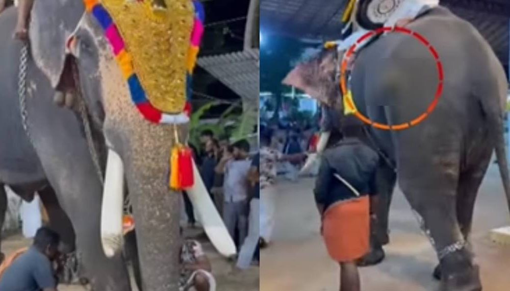 കണ്ണൂരിൽ പൊട്ടിയൊലിക്കുന്ന മുറിവുമായി ആനയെ എഴുന്നള്ളിപ്പിനിറക്കി