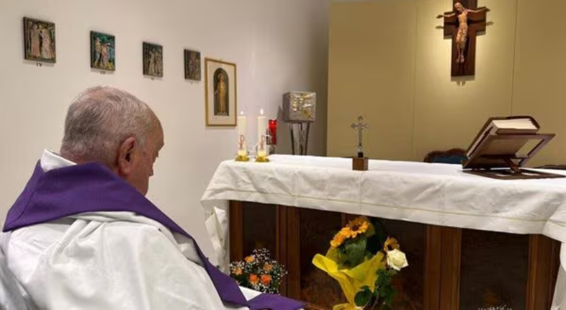 ആശുപത്രിയിലെ ചാപ്പലിൽ നിന്നുള്ള മാർപാപ്പയുടെ ഫോട്ടോ പുറത്തുവിട്ട് വത്തിക്കാൻ; വിശ്വാസി സമൂഹത്തിന് ആശ്വാസം