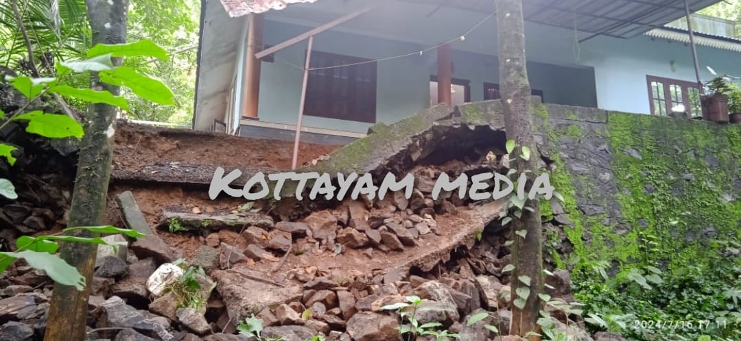 പാലാ :കരൂർ പഞ്ചായത്തിലെ കുടക്കച്ചിറയിൽ വീടിന്റെ സംരക്ഷണഭിത്തി കനത്ത മഴയിൽ ഇടിഞ്ഞു വീണു .കരൂർ പഞ്ചായത്തിലെ ഒന്നാം വാർഡിൽ ഇലവന്തി യിൽ പാപ്പച്ചന്റെ വീടിന്റെ  സംരക്ഷണ ഭീതിയാണ് കനത്ത മഴയിൽ ഇടിഞ്ഞു വീണത്.
