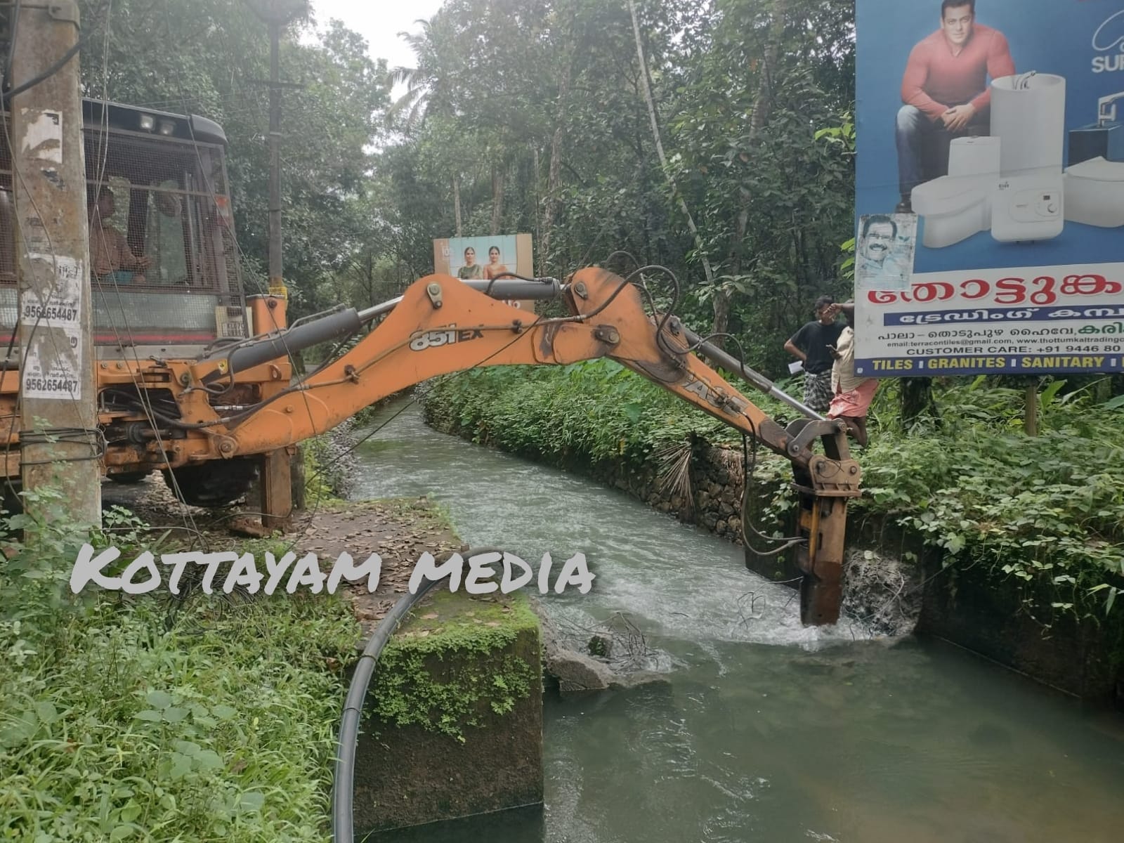 പാലാ :ഭരണങ്ങാനം പഞ്ചായത്തിലെ ആറ്;പതിമൂന്ന് ;പതിനൊന്നു വാർഡുകളിലൂടെ കടന്നു പോകുന്ന ചൂണ്ടച്ചേരി മീനാറ തോടിൽ ജനങ്ങൾക്ക് ദുരിതം വിതച്ച തടയണ ഇന്ന് നാട്ടുകാരുടെ സാന്നിധ്യത്തിൽ പൊളിച്ചു നീക്കി .പതിമൂന്നാം വാർഡ് മെമ്പർ എൽസമ്മ ജോര്ജുകുട്ടിയുടെയും;പതിനൊന്നാം വാർഡ് മെമ്പർ അനുമോൾ മാത്യുവിന്റെയും ;ആറാം വാർഡ് മെമ്പർ ബീനാ ടോമിയുടെയും സാന്നിദ്ധ്യത്തിലാണ് പഞ്ചായത്തധികൃതർ ജെ സി ബി യുമായി വന്നു തടയണ പൊളിച്ചത് .
