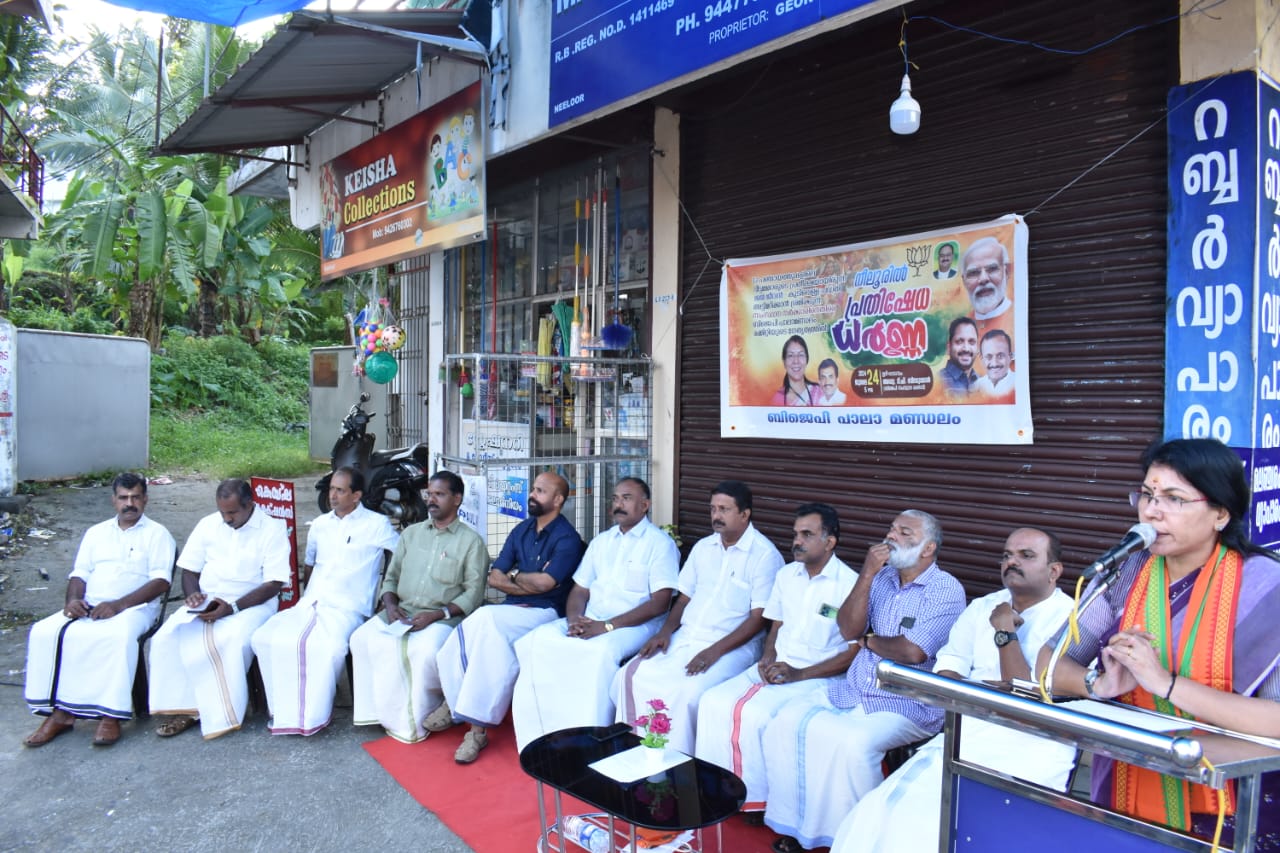 കോട്ടയം :നീലൂർ :പാലായിലേയും പരിസര പ്രദേശങ്ങളിലേയും 13 പഞ്ചായത്തുകളിലെ വീട്ടമ്മമാരുടെ പ്രതീക്ഷയായിരുന്ന ജൽജീവൻ മിഷൻ പദ്ധതിയുലൂടെ വീടുകളിൽ കുടിവെള്ളം എത്തേണ്ട പദ്ധതി സംസ്ഥാന സർക്കാർ വിഹിതം അനുവദിക്കാത്തതിനാൽ സ്തംഭിച്ച പദ്ധതി പുനരാരംഭിക്കാത്തതിൽ പ്രതിഷേധിച്ച് സംസ്ഥാന സർക്കാരിനെതിരെ നൂറുകണക്കിന് പ്രവർത്തകർ പങ്കെടുത്ത പ്രതിഷേധ ധർണ്ണ നീലൂരിൽ നടത്തി.