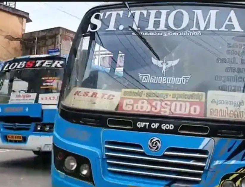 കോട്ടയം :തിരുനക്കര മൈതാനത്തിനു സമീപം ബസ് സ്കൂട്ടറില് ഇടിച്ച് അപകടം.സ്കൂട്ടര് യാത്രികന് മരിച്ചെന്ന് ഭയന്ന് ഡ്രൈവറും കണ്ടക്ടറും ഓടി രക്ഷപ്പെട്ടു.അപകടത്തെത്തുടര്ന്ന് റോഡില് ബസ് നിര്ത്തിയിട്ടതോടെ നഗരമധ്യത്തില് വന് ഗതാഗതക്കുരുക്കും രൂപപ്പെട്ടു. കോട്ടയം കല്ലറ ഇടയാഴം റൂട്ടില് സര്വീസ് നടത്തുന്ന സെന്റ് തോമസ് എന്ന സ്വകാര്യ ബസാണ് അപകടത്തില്പ്പെട്ടത്. തിരുനക്ക മൈതാനം ഭാഗത്ത് തിരിയുകയായിരുന്ന ബസാണ് അപകടത്തില്പ്പെട്ടത്.