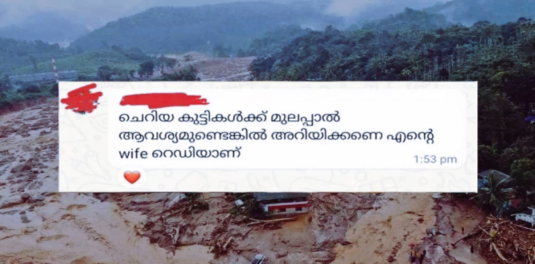 മുന്നൂറിലധികം ജീവനുകളാണ് ഒറ്റരാത്രികൊണ്ട് പൊലിഞ്ഞത്. ഇതിനിടെ ദുരന്തത്തിൽ അമ്മമാരെ നഷ്ടപ്പെട്ട കുഞ്ഞുങ്ങൾക്ക് മുലപ്പാൽ ആവശ്യമുണ്ടെങ്കിൽ അറിയിക്കണമെന്ന് ദമ്പതിമാർ സാമൂഹികമാധ്യമത്തിൽ പോസ്റ്റിട്ടതിന് താഴെ അശ്ലീല കമന്റിട്ട ആളെ നാട്ടുകാർ ചേർന്ന് കൈകാര്യം ചെയ്തു.അതായതു പഞ്ഞിക്കിട്ടു.
