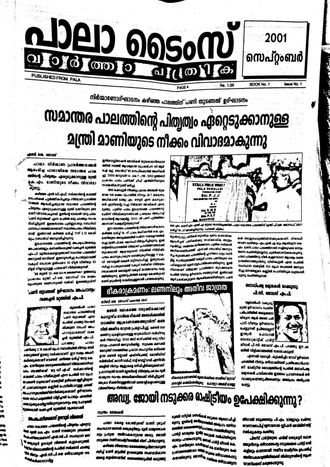 പണി തുടങ്ങൽ ഉദ്ഘാടനം നിർവ്വഹിക്കുമെന്ന് നോട്ടീസ് ഇറങ്ങി. ഇതുമായി ബന്ധപ്പെട്ട് ലീഡ് വാർത്ത അദ്യ ലക്കത്തിൽ കൊടുക്കാൻ ഞങ്ങൾ തീരുമാനിച്ചു. പാലാ പാലത്തിന്റെ പിതൃത്വം ഏറ്റെടുക്കുവാനുള്ള മന്ത്രിയുടെ നടപടി വിവാദമാകുന്നു വെന്നു സർക്കാർ രേഖകളുടെ അടിസ്ഥാനത്തിൽ വാർത്ത പ്രസിദ്ധീകരിച്ചു. ശ്രീ. കെ.എം.മാണിയുടെ സാന്നിദ്ധ്യത്തിൽ 2001 മാർച്ച് 19-ന് അന്നത്തെ പൊതുമരാമത്ത് വകുപ്പ് മന്ത്രി പി.ജെ. ജോസഫ് നിർമ്മാണ ഉദ്ഘാടനം നിർവ്വഹിക്കുന്ന ചിത്രവും ചേർത്തിരുന്നു. ഒപ്പം കേരളാ കോൺഗ്രസ് നേതാവ് ജോയി നടുക്കര രാഷ്ട്രീയ രംഗത്തു നിന്നും മാറി നിൽക്കുന്നുവെന്ന സൂചനയും ഉൾപ്പെടെ മറ്റാരും നൽകാത്ത വാർത്തകളോടെയാണ് പത്രം പുറത്തിറക്കിയത്. ഈ സമയം മറ്റു പത്രങ്ങൾ പാലം പണി തുടങ്ങലിന്റെ സപ്ലിമെന്റ് ഇറക്കി ആഘോഷിച്ചു.