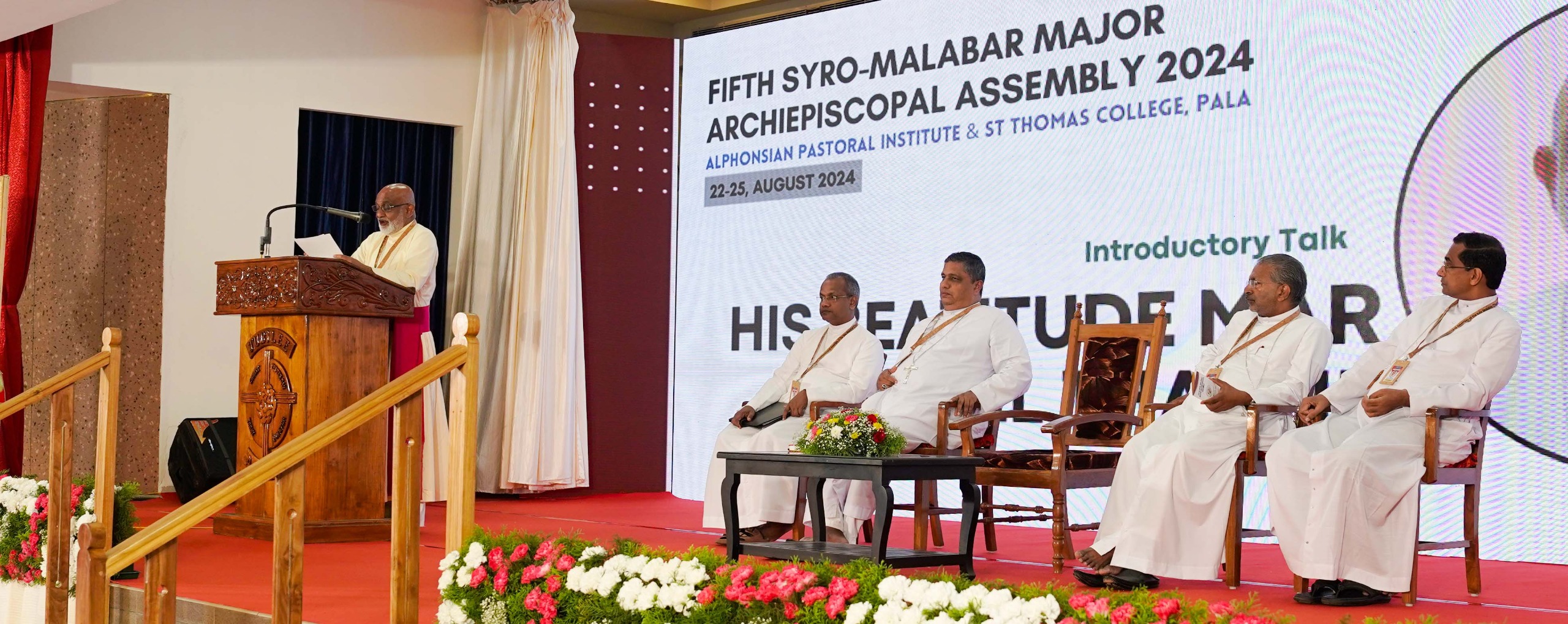 പാലാ: ഒന്നിച്ചു ചിന്തിക്കാനും ഒപ്പം നടക്കാനും ആഹ്വാനം ചെയ്ത് മാർ റാഫേൽ തട്ടിൽ പിതാവ്. സീറോമലബാർ മേജർ ആർക്കിഎപ്പിസ്കോപ്പൽ അസംബ്ലിയുടെ അഞ്ചാമത് സമ്മേളനത്തിൽ ആമുഖ പ്രഭാഷണം നടത്തുകയായിരുന്നു മേജർ ആർച്ചുബിഷപ്പ്. 2024 ഓഗസ്റ്റ് 22നു വ്യാഴാഴ്ച പാലാ അൽഫോൻസ്യൻ പാസ്റ്ററൽ ഇൻസ്റ്റിറ്റ്യുട്ടിൽ സഭാ അസംബ്ലി ആരംഭിച്ചു. ഉച്ചയ്ക്ക് രണ്ടുമണി മുതൽ പ്രതിനിധികളായി എത്തിച്ചേർന്നവരുടെ റജിസ്‌ട്രേഷൻ ആരംഭിച്ചു. അഞ്ചുമണിക്ക് സായാഹ്‌ന പ്രാർത്ഥനയ്ക്കും ജപമാലയ്ക്കുമായി അസംബ്ലി അംഗങ്ങൾ ദൈവാലയത്തിൽ ഒരുമിച്ചുകൂടി. അസംബ്ലി ആന്തം ആലപിച്ചശേഷം യോഗക്രമങ്ങളുമായി ബന്ധപ്പെട്ട നിർദ്ദേശങ്ങൾ അസംബ്ലി കമ്മിറ്റി സെക്രട്ടറി റവ.ഫാ. ജോജി കല്ലിങ്ങൽ നൽകി.