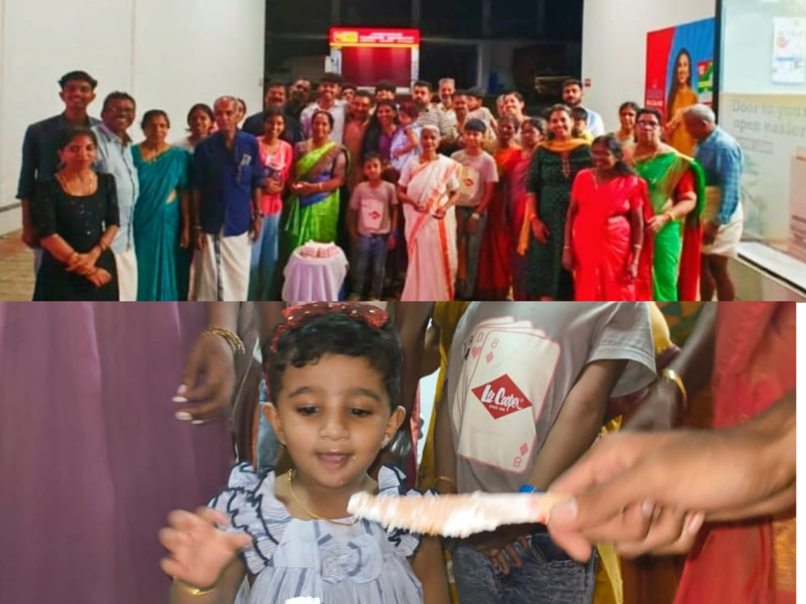 ദക്ഷിത എന്ന കുഞ്ഞു മോളുടെ ജന്മദിനമാണിന്ന് എന്ന് അറിഞ്ഞപ്പോൾ വണ്ടിയിൽ ഉണ്ടായിരുന്ന കുഞ്ഞിന്റെ മുത്തശ്ശി മീനാക്ഷിയമ്മയ്ക്കു ഒരു ആഗ്രഹം ഒരു കേക്ക് വാങ്ങി മുറിച്ച് ആഘോഷം അടിപൊളിയാക്കണമെന്ന്. ആ അമ്മയുടെ ആഗ്രഹം സാധിച്ച് കൊടുക്കാൻ പിന്നെ മക്കളും കൊച്ച് മക്കളും അടുത്ത ബന്ധുക്കളും എല്ലാം കുടി അങ്ങ് തിരുമാനിച്ചു.