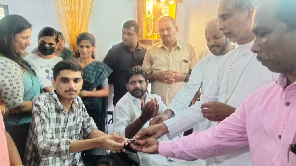 പാലാ : മസ്ക്കുലാർ ഡിസ്ട്രോഫി  രോഗിയായ തോമസുകുട്ടിക്ക് ഭിന്നശേഷി സൗഹൃദ വീട് നൽകി ദയ പാലിയേറ്റീവ് കെയർ സൊസൈറ്റി. ദയയുടെ 14 ആം വീടിന്റെ താക്കോൽ ദാനം മുൻ പാലാ രൂപത ഔക്സിലിയറി ബിഷപ്പ് മാർ. ജേക്കബ് മുരിക്കനും ഭിന്നശേഷി കമ്മിഷ്ണറും ദയ ട്രഷററുമായ ഡാക്ടർ പി ടി  ബാബുരാജും ചേർന്ന് നിർവഹിച്ചു.