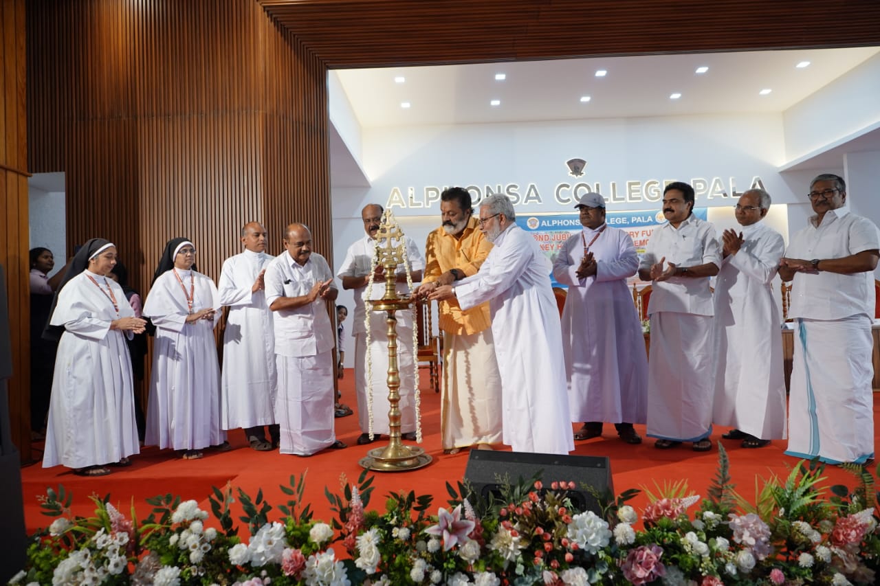 പാലാ : പാലാ അൽഫോൻസാ കോളേജിൻ്റെ വജ്ര ജൂബിലി സമാപന സമ്മേളനം രാവിലെ 9:30 ന് കോളേജ് ഓഡിറ്റോറിയത്തിൽ വച്ചു നടത്തപ്പെട്ടു. ഒരു വർഷം നീണ്ടു നിന്ന ആഘോഷത്തിൻ്റെ ഭാഗമായി സാമൂഹിക പ്രതിബദ്ധത വിളിച്ചോതുന്ന നിരവധി പ്രവർത്തനങ്ങൾ കോളേജിലെ വിവിധ സംഘടനകളുടെ നേതൃത്വത്തിൽ നടത്തപ്പെട്ടു. സമാപന സമ്മേളനത്തിലേക്ക് കോളേജ് പ്രിൻസിപ്പൽ റവ.ഡോ ഷാജി ജോൺ ഏവരേയും സ്വാഗതം ചെയ്തു. പാലാ രൂപതാദ്ധ്യക്ഷനും കോളേജിൻ്റെ രക്ഷാധികാരിയുമായ മാർ ജോസഫ് കല്ലറങ്ങാട്ട് അദ്ധ്യക്ഷത വഹിച്ച സമാപനസമ്മേളനം സിനിമാ താരവും കേന്ദ്ര പെട്രോളിയം – ടൂറിസം വകുപ്പു മന്ത്രിയുമായ ഭരത് സുരേഷ് ഗോപി ഉദ്ഘാടനം ചെയ്തു.