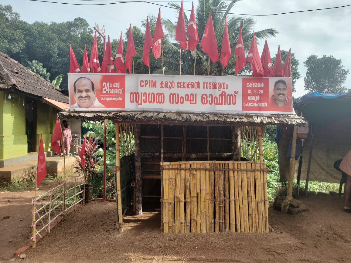 പാലാ :പേണ്ടാനംവയൽ :സിപിഐ(എം) കരൂർ ലോക്കൽ സമ്മേളനത്തിന്റെ പ്രചരണാർത്ഥം പേണ്ടാനം വയൽ ജംക്ഷനിൽ സിപിഐ(എം) പ്രവർത്തകർ ഒരുക്കിയ സ്വാഗത സംഘം ആഫീസ് ശ്രദ്ധേയമായി.പനയോല കൊണ്ടും ;മുള കൊണ്ടും ;കവുങ്ങ് കൊണ്ടുമാണ് സിജോ ;ജിബിൻ ;രാജീവ് ;തങ്കൻ എന്നീ തൊഴിലാളികൾ തങ്ങളുടെ പാർട്ടിക്കായി പുതിയൊരു പ്രചാരണ മാർഗം സ്വീകരിച്ചത് .