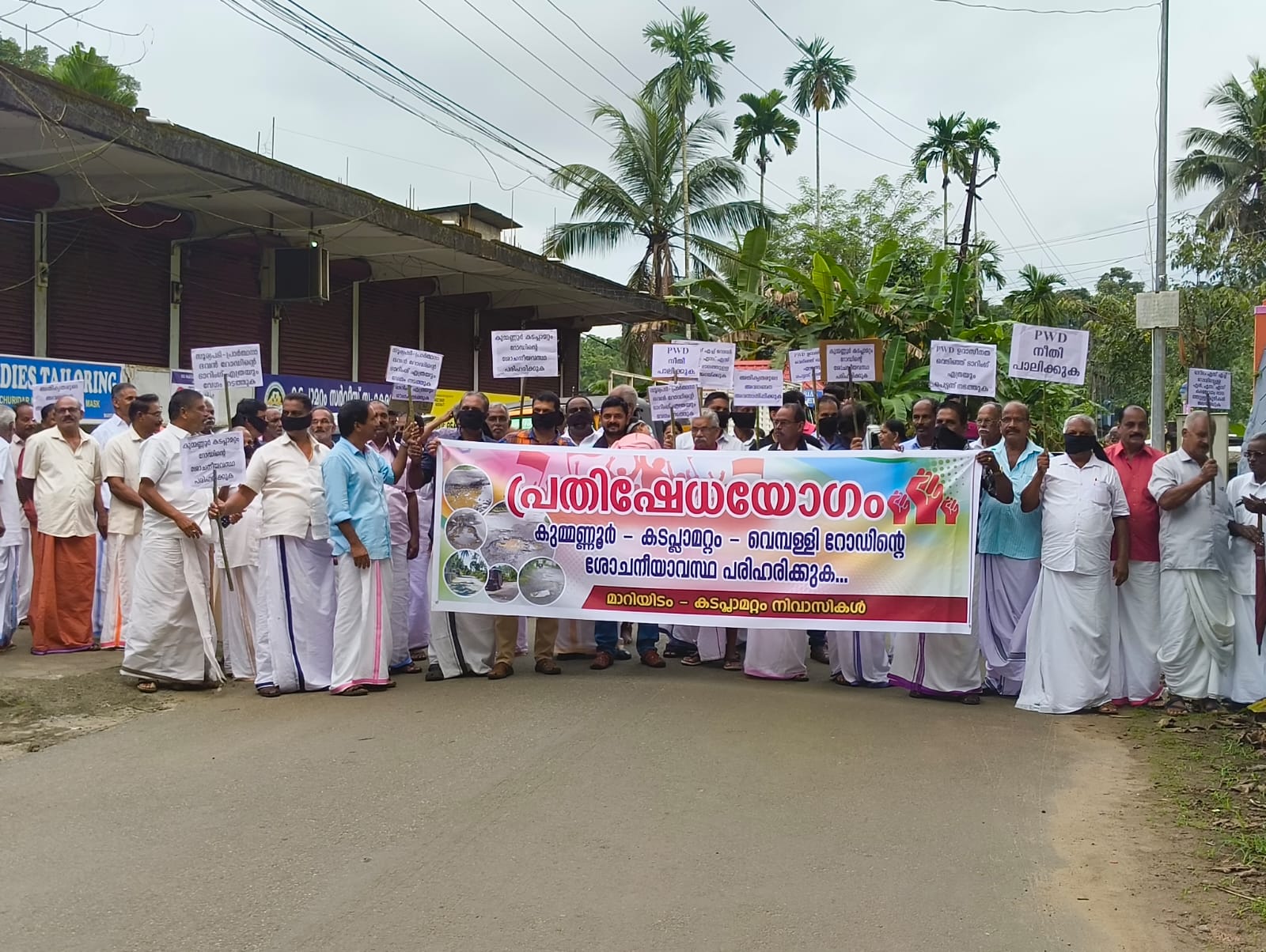 റോഡിലെ കുഴിമൂടാൻ വായ മൂടിക്കെട്ടി നാട്ടുകാർ :കുമ്മണ്ണൂർ – കടപ്ലാമറ്റം – വെമ്പള്ളി റോഡിന്റെ ശോചനിയാവസ്ഥയിൽ പ്രതിഷേധം