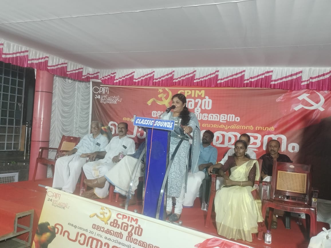 സി.പി.ഐ (എം) കരൂർ ലോക്കൽ സമ്മേളനത്തോടനുബന്ധിച്ചുള്ള പൊതുസമ്മേളനത്തിൽ പ്രസംഗിക്കുകയായിരുന്നു നടി ഗായത്രി .