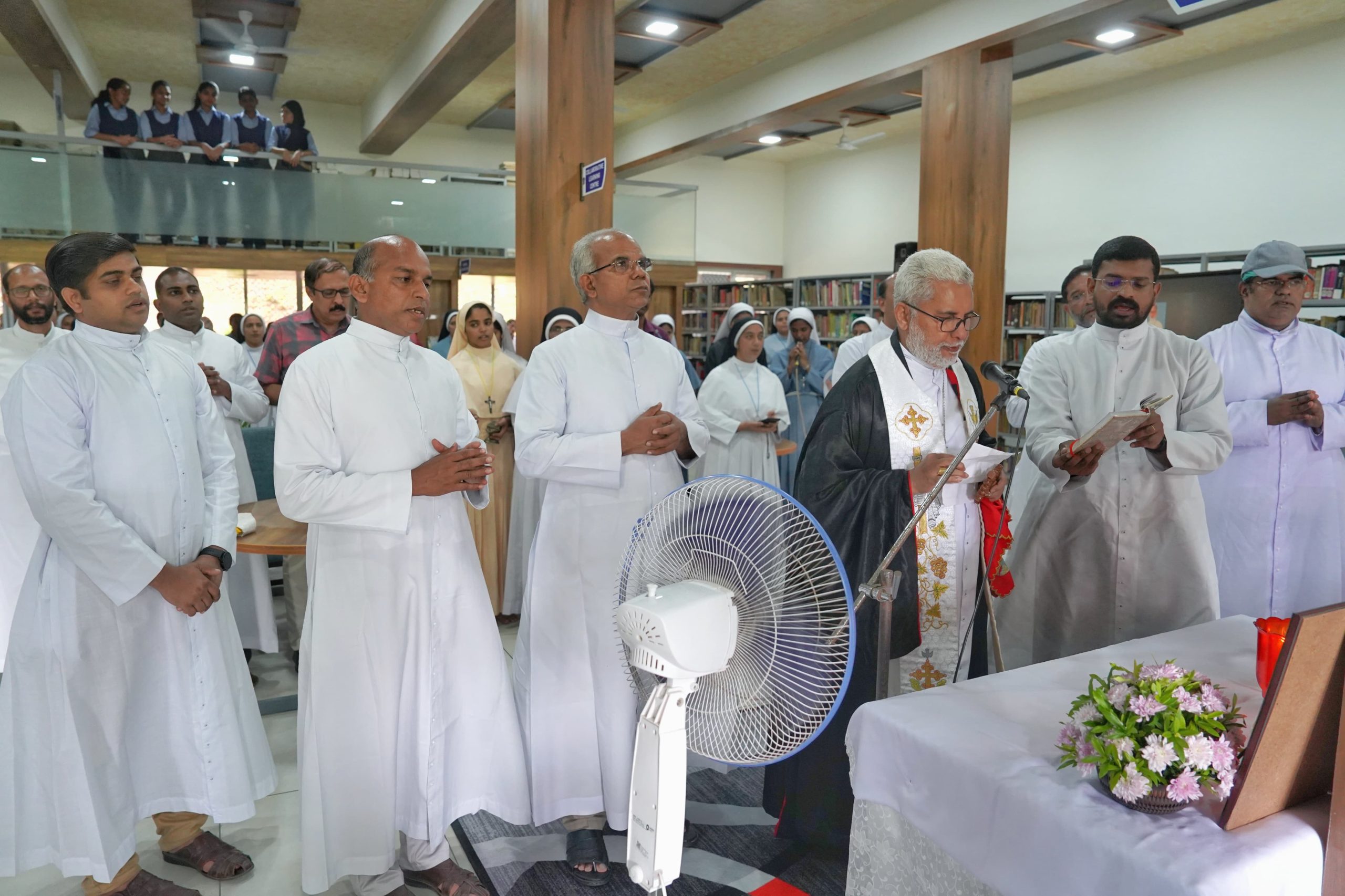 പാലാ രൂപതാദ്ധ്യക്ഷനും കോളേജിൻ്റെ രക്ഷാധികാരിയുമായ മാർ ജോസഫ് കല്ലറങ്ങാട്ട് ആശീർവ്വാദകർമ്മം നിർവ്വഹിച്ചു സംസാരിച്ചു. മരിച്ചവരിൽ നിന്ന് ജീവിച്ചിരിക്കുന്നവരിലേക്ക് തലമുറകളിലൂടെ യാത്ര ചെയ്യുന്ന സപര്യയാണ് വായനയെന്ന് അദ്ദേഹം അഭിപ്രായപ്പെട്ടു. അറിവാർജ്ജിക്കാൻ പല വഴികളുണ്ടെങ്കിലും ജ്ഞാനം നേടാൻ പുസ്തകങ്ങളെ ആശ്രയിക്കണമെന്ന് അദ്ദേഹം കൂട്ടിച്ചേർത്തു.