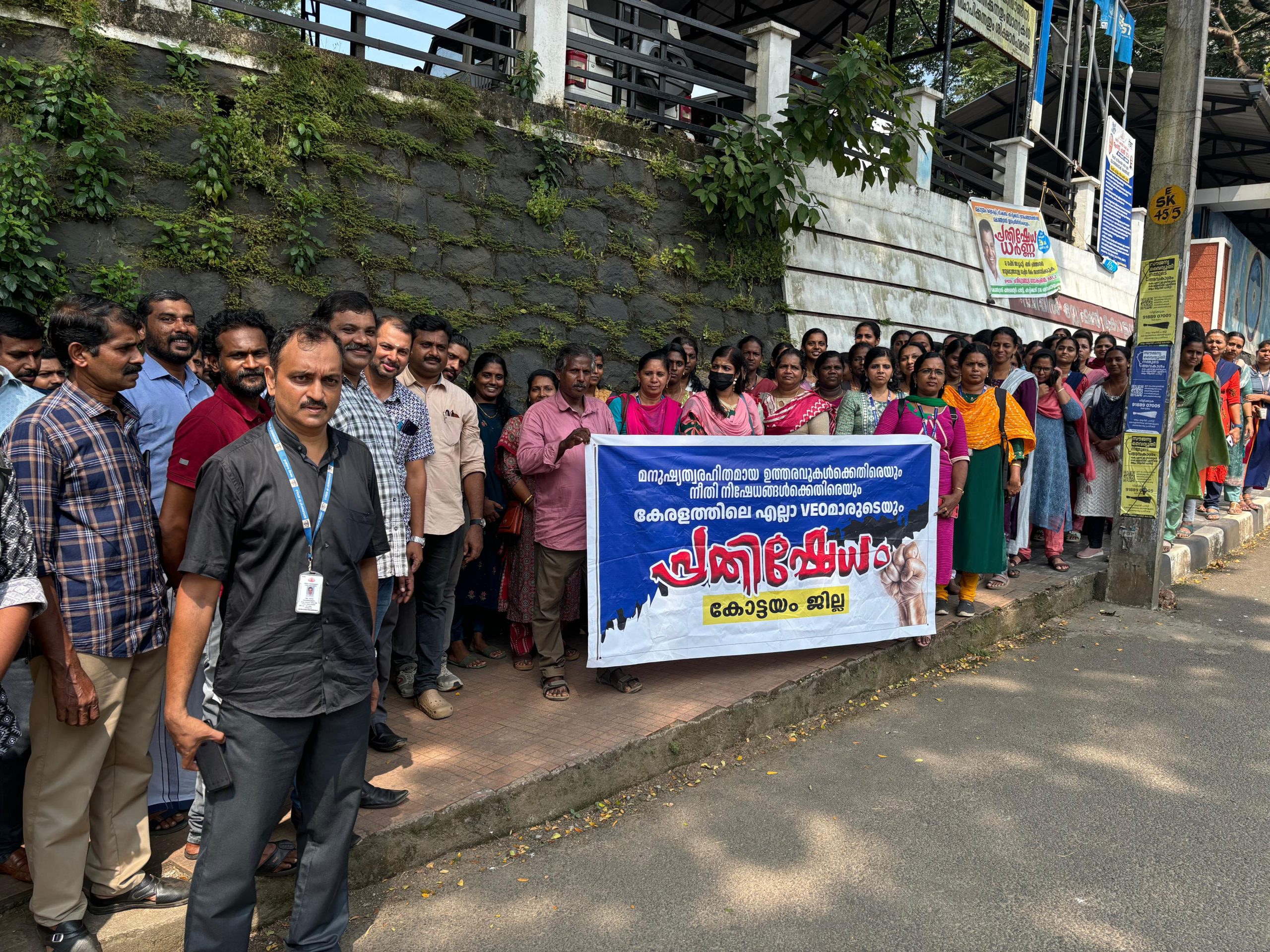കോട്ടയം:വില്ലേജ് എക്സ്റ്റൻഷൻ ഓഫീസർമാർ പഞ്ചായത്ത് സെക്രട്ടറി മുൻപാകെ നവംബർ 1 മുതൽ ഹാജർ രേഖപ്പെടുത്തി സെക്രട്ടറിയുടെ സാക്ഷ്യപത്രത്തിന്റെ അടിസ്ഥാനത്തിൽ ബ്ലോക്ക് ഡെവലപ്പ്മെന്റ് ഓഫീസർ (ബി. ഡി. ഒ )ശമ്പളം അനുവദിക്കുക,ഫീൽഡ് പരിശോധനക്കും മറ്റും സെക്രട്ടറിയുടെ മുൻപാകെ മൂവ്മെന്റ് രജിസ്റ്ററിൽ ഒപ്പിട്ട് കൊണ്ട് അനുവാദം വാങ്ങി മാത്രം പോകേണ്ടതാണ് എന്നുള്ള തദ്ദേശ വകുപ്പ് പ്രിൻസിപ്പൽ സെക്രട്ടറി ഇറക്കിയ വിചിത്രമായ ഉത്തരവിനെതിരെയും വകുപ്പ് സംയോജനത്തിന് ശേഷവും വിഇഒ മാർക്ക് ഇന്റർട്രാൻസ്ഫർ അനുവദിക്കാത്ത തുല്യ നീതി നിഷേധത്തിനെതിരെയും,ജോലി ഭാരം കുറക്കുന്നതിനായുള്ള വ്യക്തമായ ജോബ്ചാർട്ട് ഉണ്ടാക്കുക തുടങ്ങിയ ആവശ്യങ്ങൾ ഉന്നയിച്ചു കൊണ്ടും കോട്ടയം ജില്ലയിലെ എല്ലാ ബ്ലോക്ക് പഞ്ചായത്തിലെയും വില്ലേജ് എക്സ്റ്റൻഷൻ ഓഫീസർമാർ കോട്ടയം കളക്ടറേറ്റിന് മുന്നിൽ പ്രതിഷേധ യോഗം ചേരുകയും… ജില്ല തദ്ദേശ വകുപ്പ് ജോയിന്റ് ഡയറക്ടർ മുൻപാകെ നിവേദനം സമർപ്പിക്കുകയും ചെയ്തു.