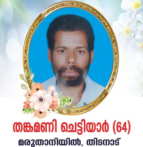 കോട്ടയം :തിടനാട് മരുതാനിയിൽ വീട്ടിൽ തങ്കമണി ചെട്ടിയാർ (64) നിര്യാതനായി സംസ്കാരം 19/11/2024 ചൊവ്വാഴ്ച രാവിലെ 11 മണിക്ക് വീട്ടുവളപ്പിൽ.