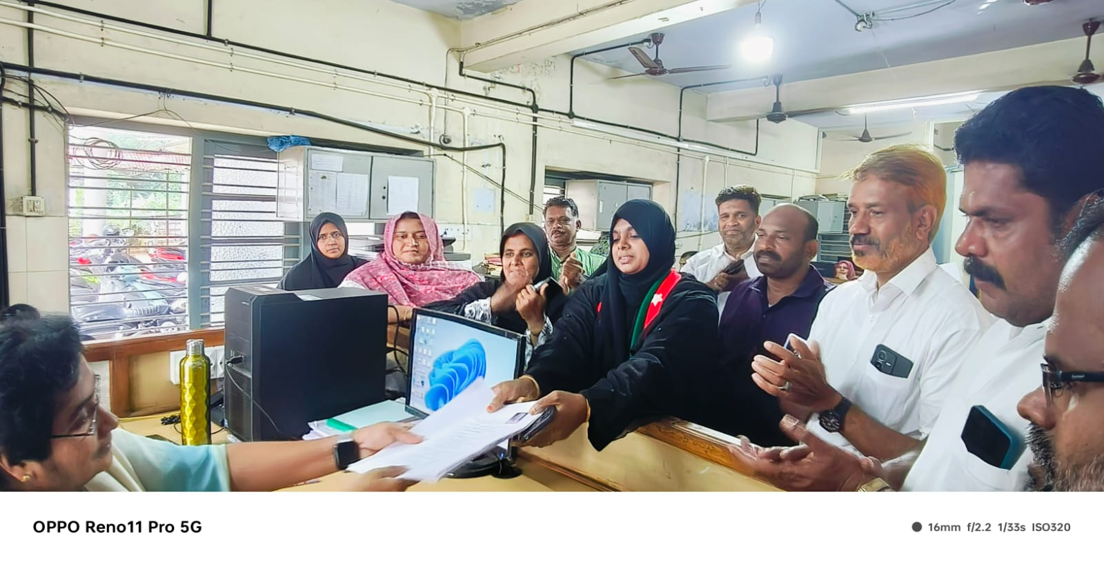 ഈരാറ്റുപേട്ട – ഈരാറ്റുപേട്ട നഗരസഭകുഴിവേലി ഡിവിഷൻ എസ്.ഡി.പി.ഐ. സ്ഥാനാത്ഥി ആയി മത്സരിക്കുന്ന തസ്നീം അനസ് വരണാധികാരിയായ നഗരസഭാ സൂപ്രണ്ട് ജാൻസി മുമ്പാകെ നാമനിർദ്ദേശപത്രിക സമർപ്പിച്ചു.