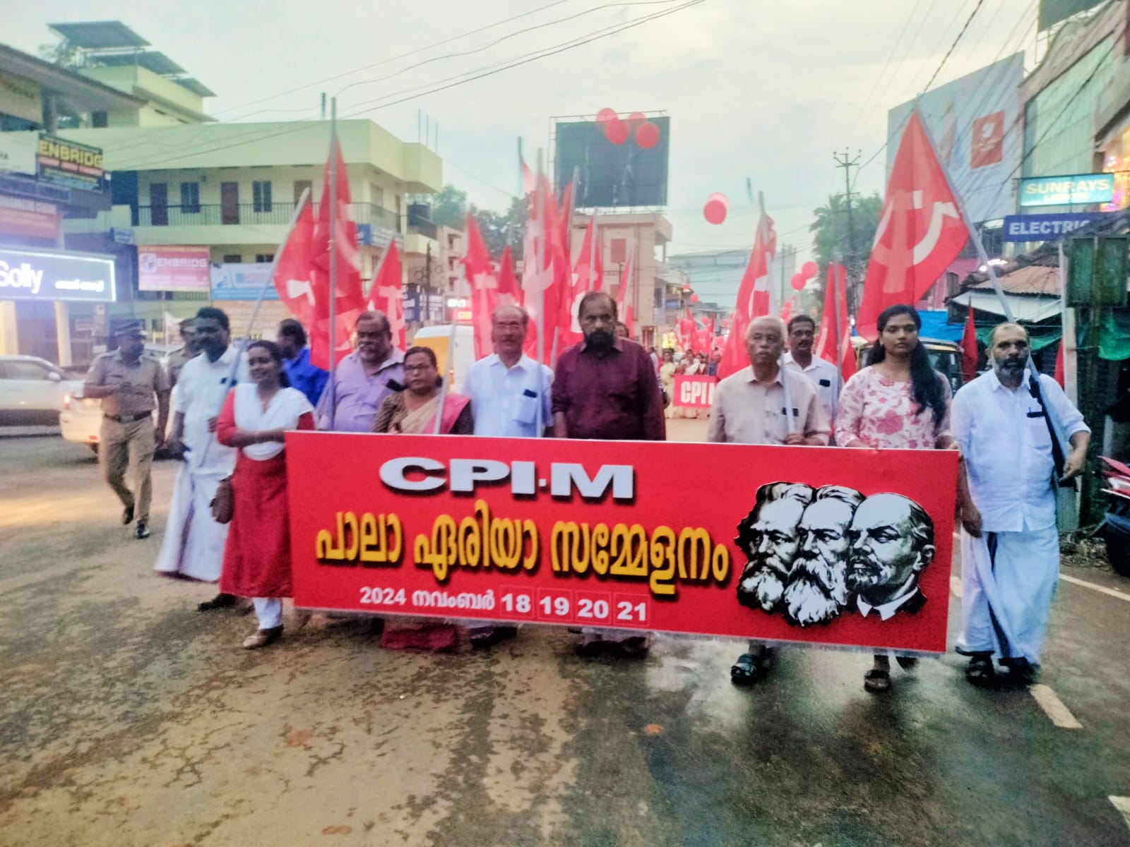 കോട്ടയം :പാലാ :പാലായുടെ സമകാലീന രാഷ്ട്രീയത്തിൽ സിപിഐ(എം)ന്റെ അനിഷേധ്യ ശക്തി വിളിച്ചോതിക്കൊണ്ട് ഇന്ന് വൈകിട്ട് പാലായിൽ നടന്ന പ്രകടനം തൊഴിലാളി വർഗ്ഗത്തിന്റെ കൂലം കുത്തിയൊഴുക്കായി മാറി.മീനച്ചിലാർ പടിഞ്ഞാറേക്ക് ഒഴുകിയപ്പോൾ സിപിഐ (എം)തീർത്ത ചുവപ്പ് നദി കിഴക്കോട്ടൊഴുകി കുരിശുപള്ളി കവലയിലെ കൊടിയേരി ബാലകൃഷ്ണൻ നഗറിലെത്തി.