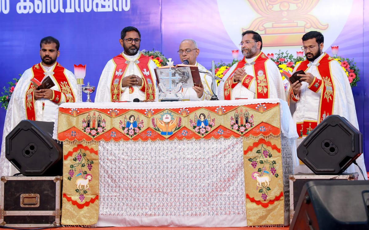 ബൈബിള് കണ്വെന്ഷന് രണ്ടാം ദിനമായ ഇന്നലെ (20-12-2024) വൈകുന്നേരം അര്പ്പിക്കപ്പെട്ട വിശുദ്ധ കുര്ബാനയില് മുൻചിക്കാഗോ രൂപതാധ്യക്ഷൻ മാർ.ജേക്കബ് അങ്ങാടിയത്ത് മുഖ്യകാര്മ്മികത്വം വഹിച്ചു. ഫാ.ജോസഫ് മുത്തനാട്ട്, ഫാ.ജോസ് കുറ്റിയാങ്കൽ, ഫാ.ഇമ്മാനുവേൽ കാഞ്ഞിരത്തുങ്കൽ, ഫാ. ജോര്ജ് ഒഴുകയിൽ എന്നിവര് സഹകാര്മ്മികരായിരുന്നു.