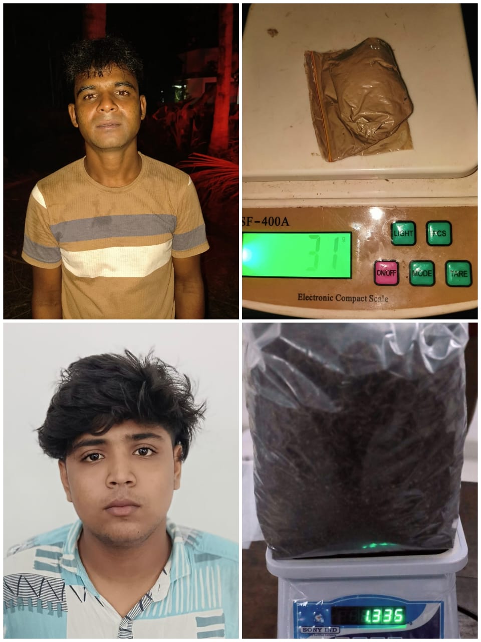 അൽത്താഫിൽ നിന്ന് 1.400 കിലോഗ്രാം കഞ്ചാവും മുഹമ്മദ് മിറാജുൽ ഹഖിൽ നിന്ന് 31ഗ്രാം ഹെറോയിനും പിടിച്ചെടുത്തു.അൽത്താഫിനെ രണ്ടാംകുറ്റി ഇടിയോടിക്കാവ് ക്ഷേത്രത്തിന് സമീപത്ത് നിന്നാണ് പിടികൂടിയത്.വൻ തോതിൽ ഹെറോയിൻ കൊണ്ടുവന്ന് ഇതരസംസ്ഥാന തൊഴിലാളികൾക്ക് ഇടയിൽ മാത്രം കച്ചവടം നടത്തുന്നതാണ് മുഹമ്മദ് മിറാജുൽ ഹഖിന്റെ രീതി.