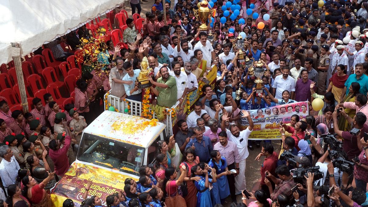 അവസാന ഇനംവരെ സസ്പെന്സ് നിലനിര്ത്തി ഫോട്ടോഫിനിഷിലൂടെ, ഒരു പോയിന്റ് വ്യത്യാസത്തില് പാലക്കാടിനെ പിന്നിലാക്കിയാണ് തൃശൂരിന്റെ കിരീടനേട്ടം.