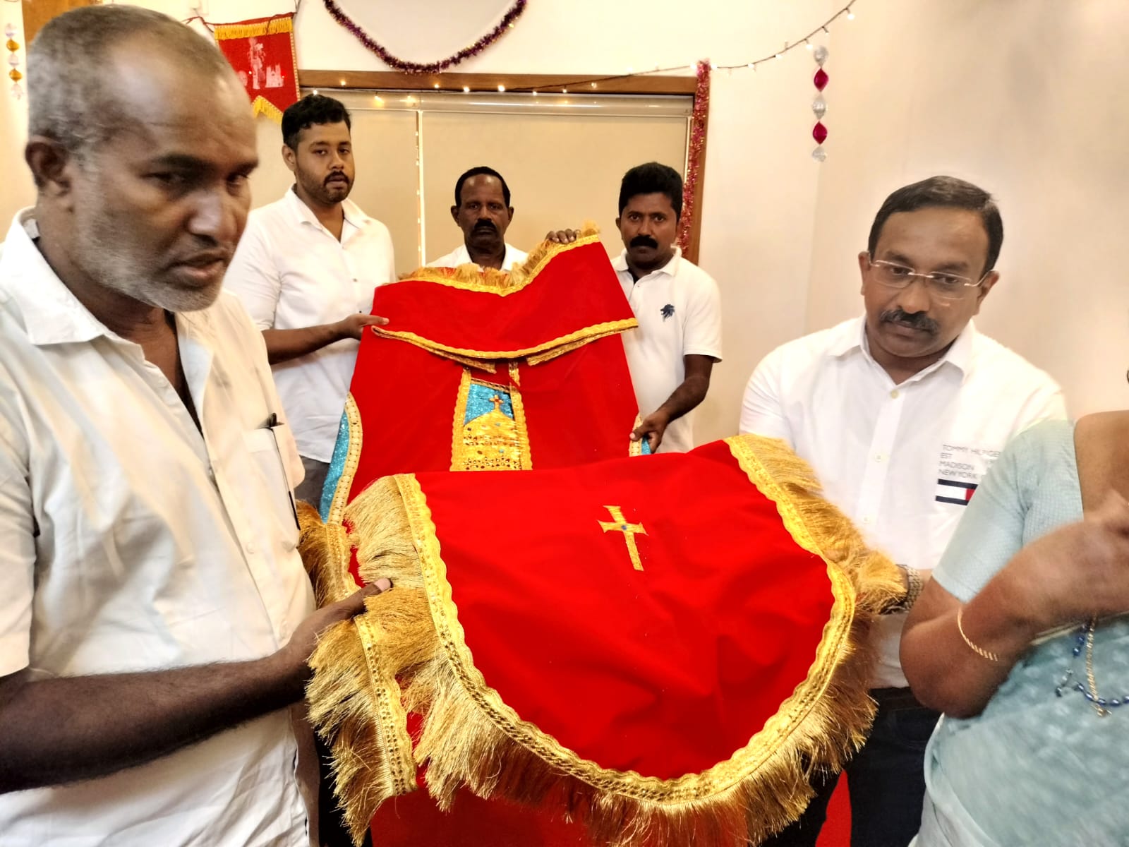 വസതിയുടെ പ്രധാന മുറിയിൽ വച്ചിരുന്ന ചുവന്ന പതാകയെ ഭക്ത ജനങ്ങളെല്ലാം വണങ്ങി .തൊട്ടു വന്ദിച്ചു.വാഹന റാലിയിൽ പങ്കെടുക്കുന്ന വാഹനങ്ങളുടെ വെഞ്ചരിപ്പും നടന്നു .തങ്ങൾക്കിതൊരു അനുഷ്ട്ടാനമാണെന്നു ഗൃഹനാഥൻ തോമസ് കോട്ടയം മീഡിയയോട് പറഞ്ഞു .അർത്തുങ്കൽ പള്ളിയിലെ ഡീക്കൻ തോമസ് ;ഡീക്കൻ ആഷിൻ.വലവൂർ സെന്റ് മേരീസ് പള്ളി വികാരി കുര്യാക്കോസ് പാത്തിക്കൽ പുത്തൻപുരയിൽ;ഫാദർ  തോമസ് മുള്ളംകുഴിയിൽ തുടങ്ങിയവർ നേതൃതം നൽകി.ജോസുകുട്ടി പൂവേലിൽ;ജോർജ് പള്ളിപ്പറമ്പിൽ എന്നിവരും പ്രാർത്ഥനാ ശുശ്രുഷയ്ക്ക് നേതൃത്വം നൽകി .