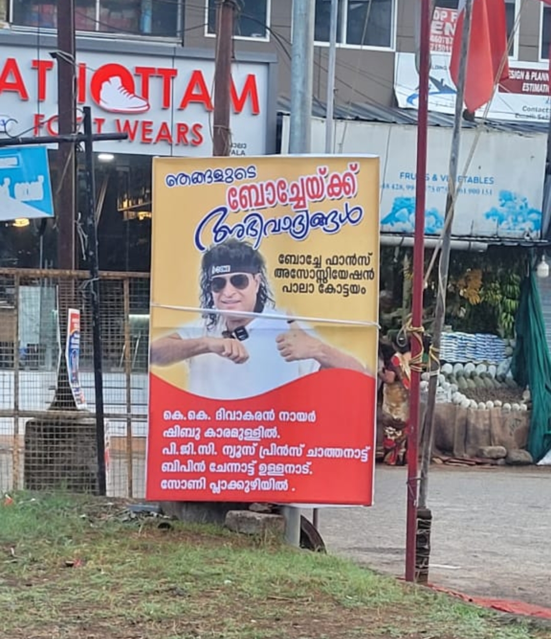 പാലാ: പാലായിലും ബോബി ചെമ്മണ്ണൂരിന് പിന്തുണ .ഇന്ന് രാവിലെ നേരം വെളുത്തപ്പോഴാണ് ബോച്ചെയ്ക്ക് പിന്തുണയുമായി ഫ്ളക്സ് ബോർഡ് ഉയർന്നത്.കുരിശുപള്ളിക്കവലയിലും ,മഹാറാണിക്കവലയിലുമാണ് ഫ്ളക്സ് ബോർഡുകൾ ഉയർന്നത്.