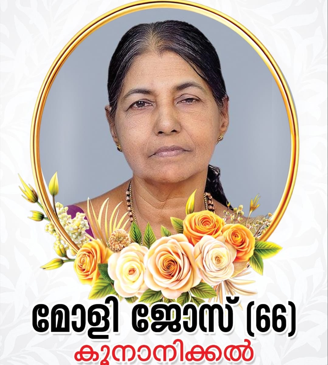 പാലാ: കൂനാനിക്കൽ ജോസിൻ്റെ ഭാര്യ മോളി ജോസ് (66)നിര്യാതയായി. സംസ്കാര ശുശ്രൂഷാകർമ്മങ്ങൾ ഇന്ന് (22.01.25) ബുധൻ മൂന്നുമണിക്ക് പാലാക്കാട് കുരിശു പള്ളിക്കു സമീപമുള്ള വീട്ടിൽ ആരംഭിക്കുന്നതും കിഴപറയാർ സെൻ്റ് ഗ്രിഗോറിയസ് പള്ളിയിലെ കുടുംബ കല്ലറയിൽ മൃതദേഹം സംസ്കരിക്കുന്നതുമാണ്.