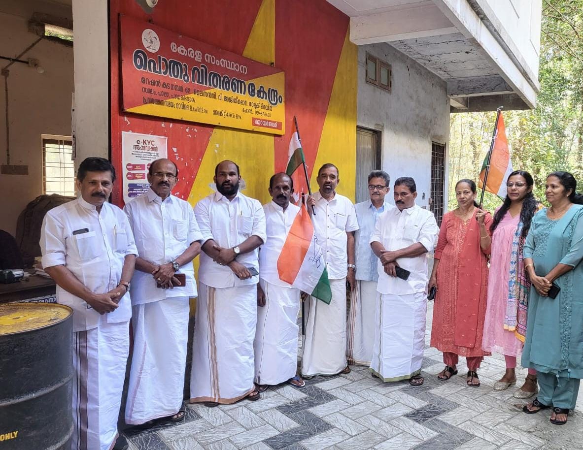 പാലാ :കെ. പി. സി. സി യുടെ നിർദേശം അനുസരിച്ചു പാലാ മണ്ഡലം കോൺഗ്രസ് കമ്മിറ്റിയുടെ നേതൃത്വത്തിൽ പഴയ കൊട്ടാരം ജംഗ്ഷനിലെ റേഷൻ കടയ്ക്കു മുന്നിൽ ധർണ്ണ നടത്തി . അരിയെവിടെ പറയു പറയു സർക്കാരെ എന്ന മുദ്രാവാക്യം ഉയർത്തികൊണ്ട്, രൂക്ഷമായ വിലക്കയറ്റത്തിൽ പ്രതിഷേധിച്ചു കൊണ്ട് നടത്തിയ സമര പരിപാടിയിൽ കോൺഗ്രസ് പാലാ മണ്ഡലം പ്രസിഡന്റ് തോമസ്കുട്ടി നെച്ചിക്കാടൻ അധ്യക്ഷത വഹിച്ചു.
