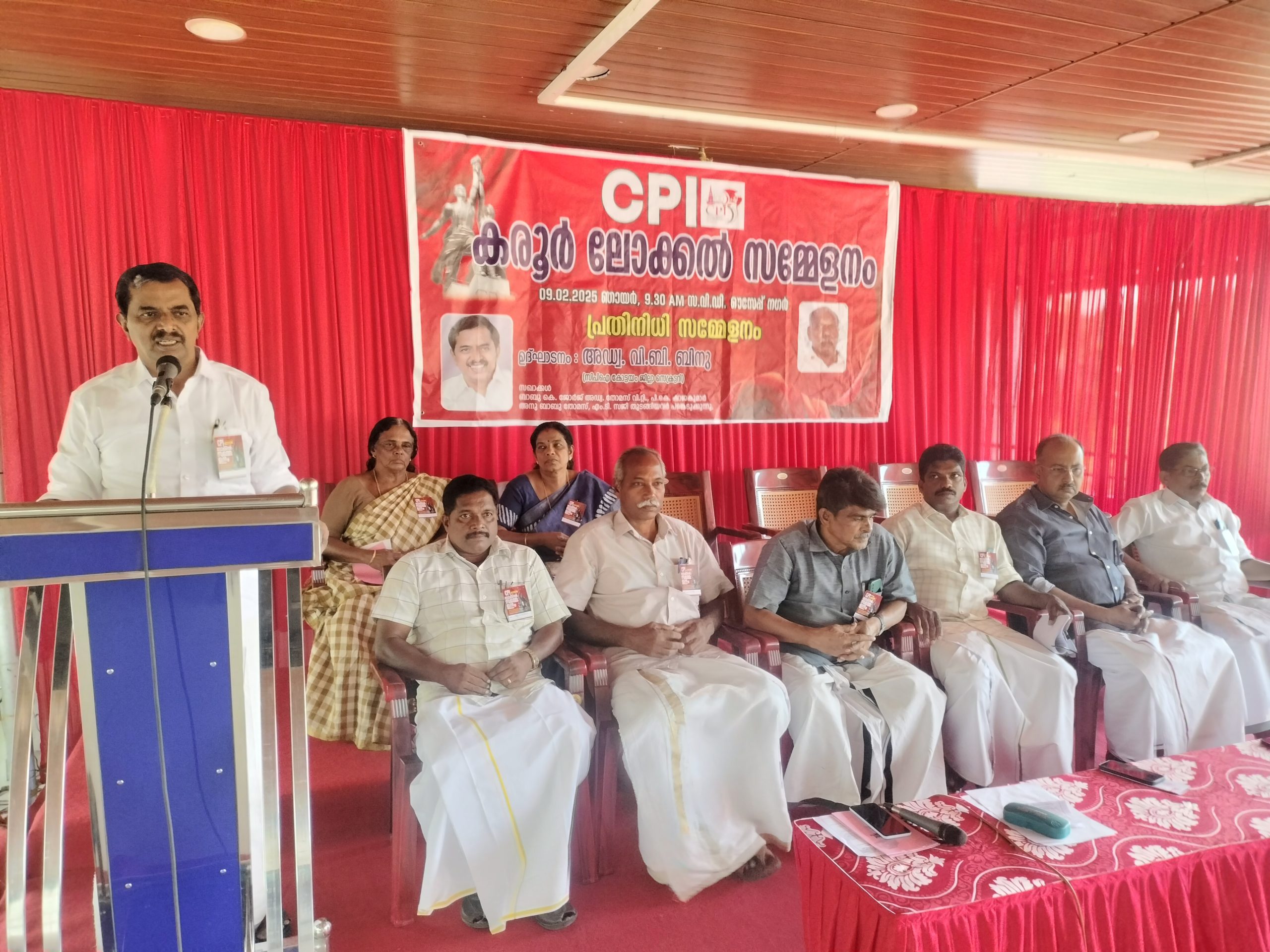 സി.പി.ഐ കരൂർ ലോക്കൽ സമ്മേളനം വലവൂർ ബാങ്ക് ഹാളിൽ ഉദ്ഘാടനം ചെയ്ത് സംസാരിക്കുകയായിരുന്നു അഡ്വ: വി.ബി ബിനു.