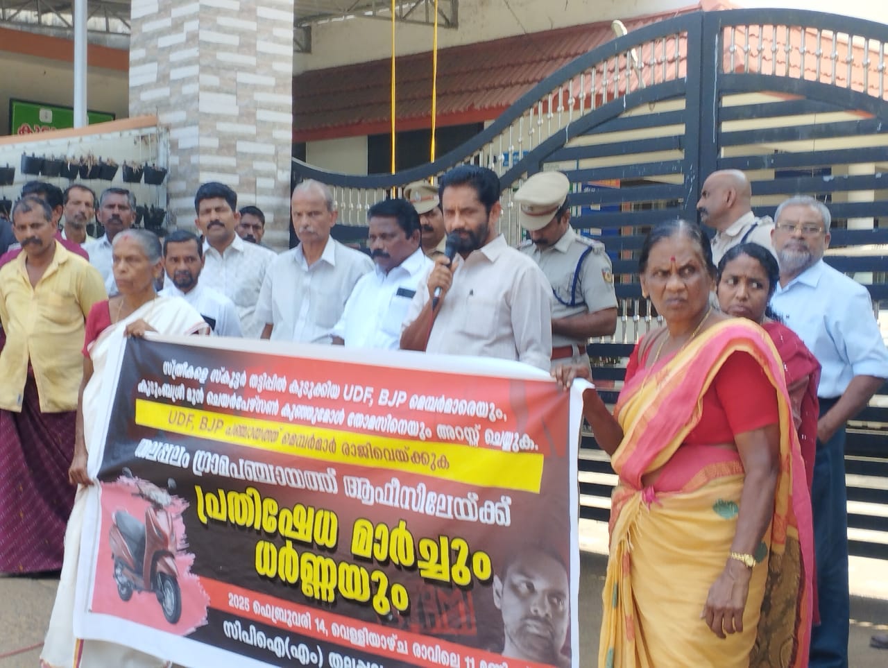 പഞ്ചായത്ത് പടിക്കൽ നടന്ന ധർണ സിപിഐഎം ജില്ലാ കമ്മിറ്റിയംഗം ജോയ് ജോർജ് ഉദ്ഘാടനം ചെയ്തു.200 ഓളം ആളുകളാണ് തലപ്പലം പഞ്ചായത്തിൽ സ്കൂട്ടർ തട്ടിപ്പിന് ഇരയായത്. കസ്റ്റമറെ ചേർക്കുന്നതിന് യു ഡിഎഫ് ബിജെപി പഞ്ചായത്ത് അംഗങ്ങൾ സൊസൈറ്റിയുടെ ഏജന്റായി പ്രവർത്തിച്ചിരുന്നു.
