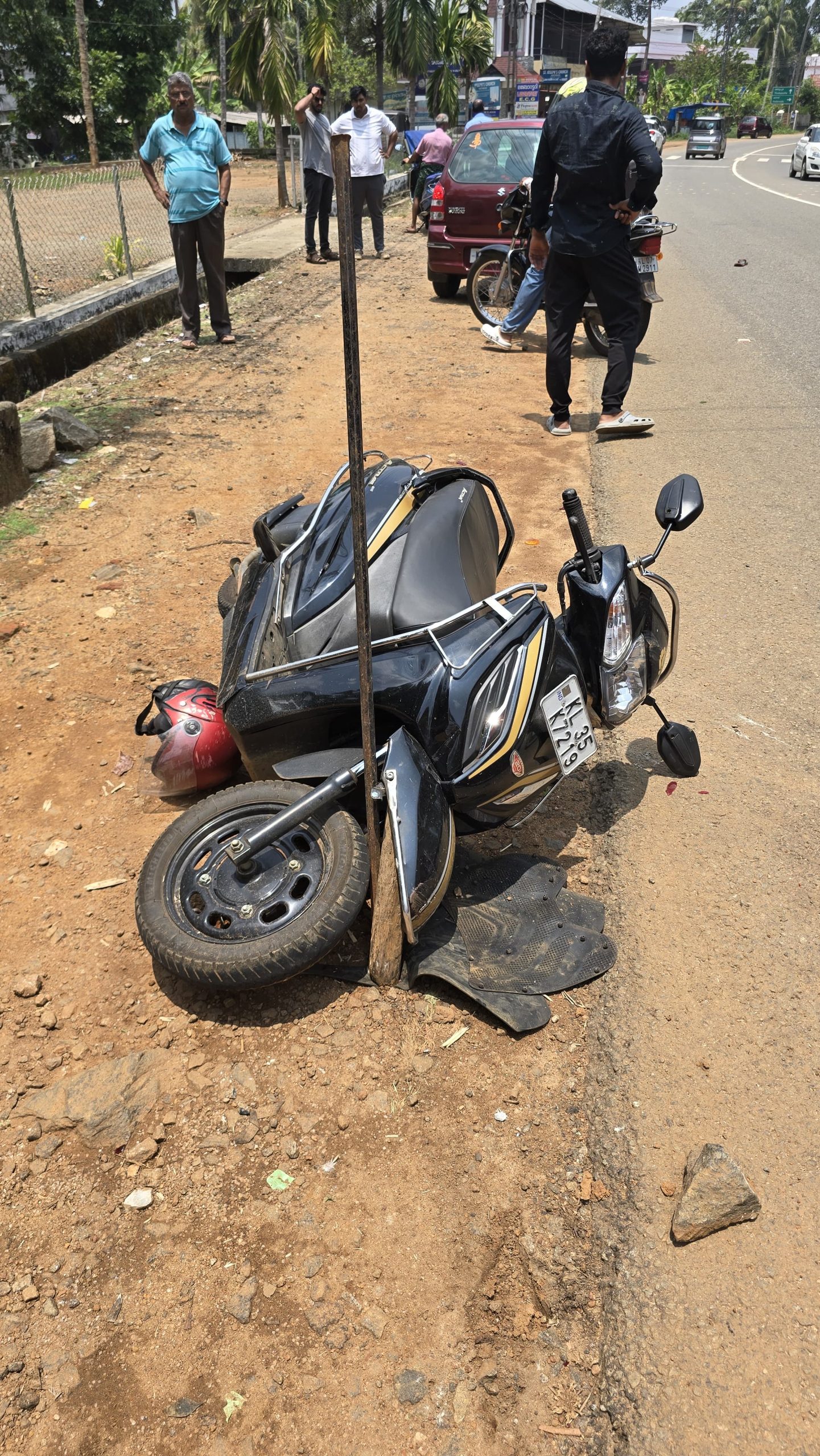 പമ്പിൽ നിന്നും പെട്രോൾ അടിച്ച് പുറത്തേക്ക് ഇറങ്ങിവന്ന സ്കൂട്ടറിനു പിന്നിൽ പാലായിൽ നിന്ന് തൊടുപുഴക്ക് പോകുകയായിരുന്ന സ്വകാര്യ ബസ് ഇടിക്കുകയായിരുന്നു.