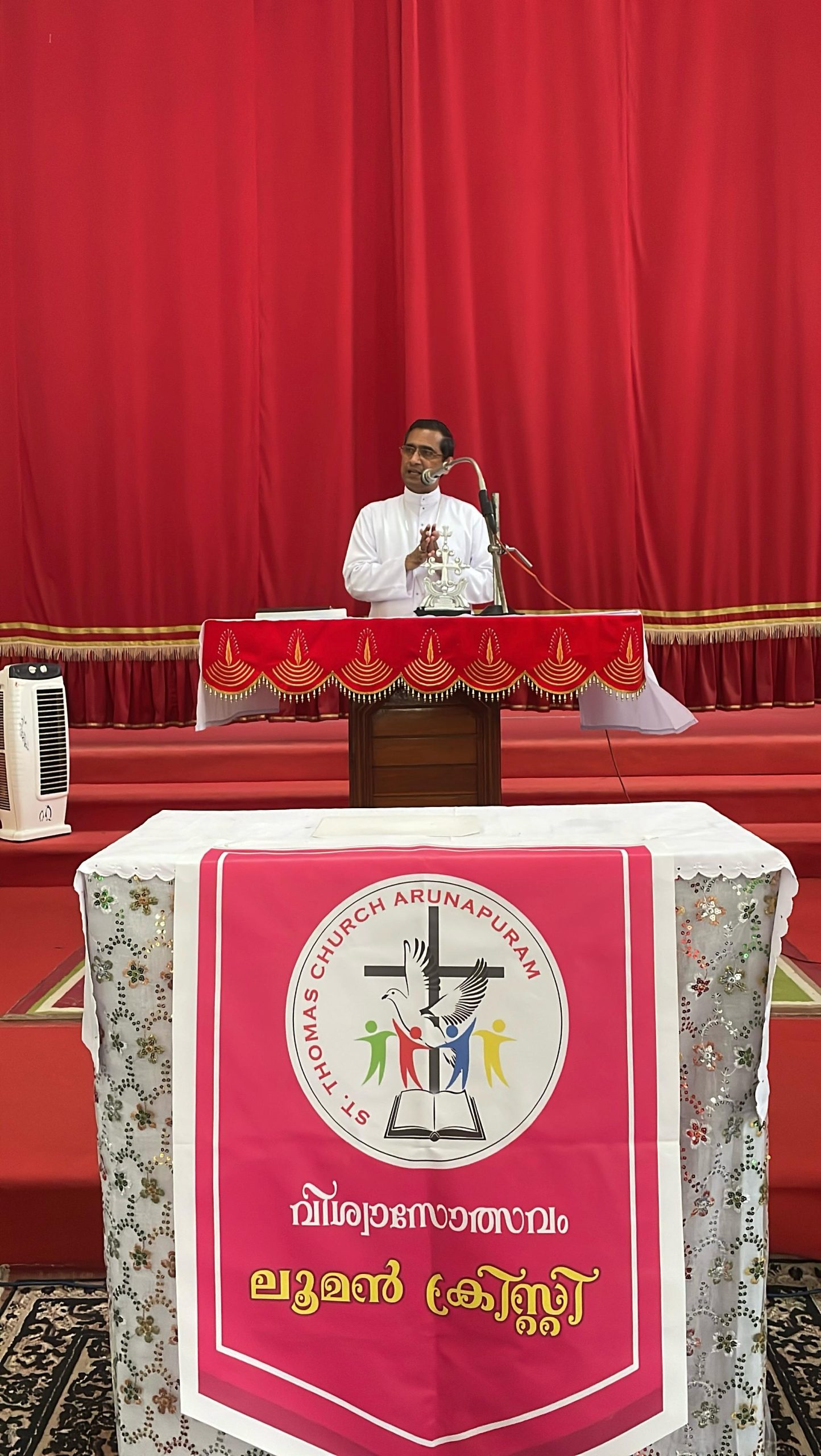 പാലാ:അരുണാപുരം . സെൻ്റ് തോമസ് സൺഡേ സ്കൂളിൻ്റെ ‘ലൂമെൻ ക്രിസ്റ്റി’ 2025 ന്റെ അഞ്ചാം ദിനമായ ഇന്ന് സീറോ മലബാർ സഭ കൂരിയ ബിഷപ്പ് മാർ സെബാസ്റ്റ്യൻ വാണിയപ്പുരക്കലിൻ്റെ സന്ദർശനത്താൽ അനുഗ്രഹീതമായി .