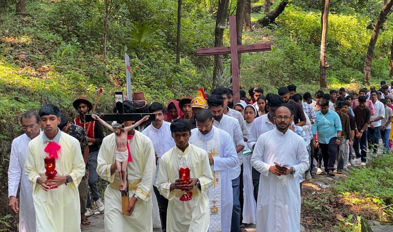 പൂഞ്ഞാർ : മിശിഹായുടെ പീഡാനുഭവത്തിൻ്റെയും കുരിശുമരണത്തിൻ്റെയും പാവനമായ സ്മരണയിൽ പാലാ രൂപത യുവജനപ്രസ്ഥാനം എസ്.എം.വൈ.എം. – കെ.സി.വൈ.എം. പാലാ രൂപതയുടെ നോമ്പുകാല കുരിശുമല തീർത്ഥാടനം നടത്തപ്പെട്ടു. എസ്.എം.വൈ.എം. പൂഞ്ഞാർ ഫൊറോനയുടെയും, എസ്.എം.വൈ.എം. പെരിങ്ങുളം യൂണിറ്റിൻ്റെയും സഹകരണത്തോടെ പെരിങ്ങുളം കാൽവരി മൗണ്ട് കുരിശുമലയിലേയ്ക്കാണ് തീർത്ഥാടനം നടത്തപ്പെട്ടത്.