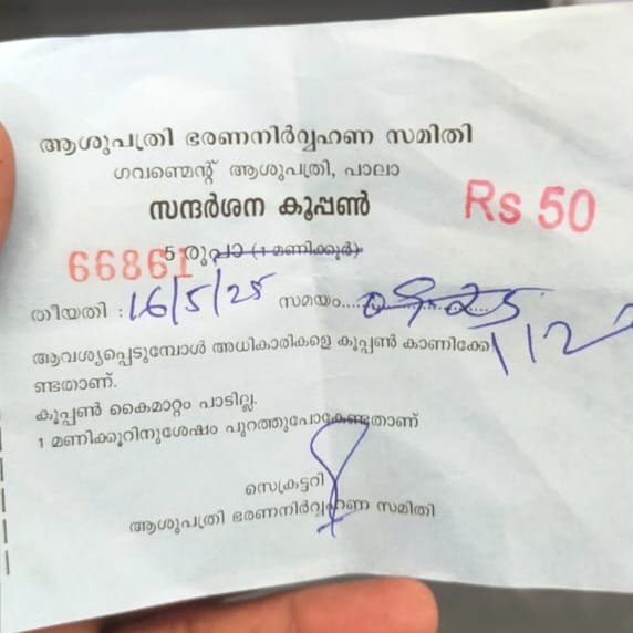 പാലാ ജനറൽ ആശുപത്രിയിൽ സന്ദർശന പാസ്സിൽ തട്ടിപ്പ്  .പാലാ ജനറൽ ആശ്വപത്രിയിൽ രോഗി സന്ദർശന പാസ്സ് അൻപത് രൂപയാണ് വാങ്ങുന്നത് അഞ്ച് രൂപയായിരുന്നു മുമ്പ് വാങ്ങിയിരുന്നത്. ഈ സന്ദർശന പാസ്സ് സെക്യൂരിറ്റി തിരികെ വാങ്ങുകയും സമയം തിരുത്തി അടുത്ത ആൾക്ക് നൽകിയാണ് പുതിയ തട്ടിപ്പ് .