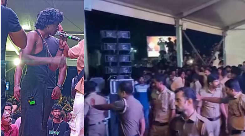 ഒന്നിലധികം തവണ പരിപാടി നിർത്തി വെകണ്ടതായി വന്നു . നിരവധി തവണ പൊലീസ് ലാത്തി വീശി. ഇതിനിടെ വേടൻ പ്രശ്നമുണ്ടാക്കരുതെന്നും വേദിക്കരികിൽ നിന്ന് മാറണമെന്നുമടക്കം ആളുകളോട് അഭ്യര്ത്ഥിച്ചെങ്കിലും തിരക്ക് നിയന്ത്രിക്കാനായില്ല. ഇതിനിടെ, പൊലീസിന്റെ ലാത്തി വാങ്ങി സംഘാടക൪ കാണികളെ അടിച്ചതും സംഘ൪ഷത്തിനിടയാക്കി. 2000 പേ൪ക്ക് മാത്രം ഉൾക്കൊള്ളാവുന്ന മൈതാനിയിലേക്ക് പതിനായിരങ്ങളാണ് എത്തിയത്. ആളുകളെ നിയന്ത്രിക്കാൻ സംവിധാനമൊരുക്കാത്തതും സൗജന്യ പ്രവേശനം നൽകിയതും വീഴ്ചയെന്നാണ് ആക്ഷേപം. മതിയായ പൊലീസും സ്ഥലത്തില്ലായിരുന്നു. തിരക്കും ക്രമസമാധാന പ്രശ്നങ്ങളും നിയന്ത്രിക്കാൻ കഴിയാതെ വന്നോതോടെ മൂന്നു പാട്ട് മാത്രം പാടിയ ശേഷം വേടൻ വേദി വിടുകയായിരുന്നു.