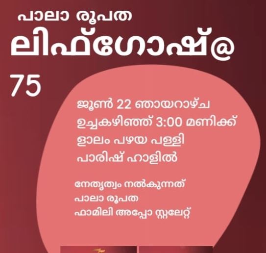 1950 ൽ രൂപം കൊണ്ട പാലാ രൂപത പ്ലാറ്റിനം ജൂബിലി ആഘോഷിക്കുന്ന ഈ വർഷം 1950 ൽ ജനിച്ച രൂപതാംഗങ്ങളായ 1460 ൽ പരം വ്യക്തികളെയാണ് ആദരിക്കുന്നത്. കുടുംബ അജപാലനം മുഖ്യ ഉത്തരവാദിത്വമായി സ്വീകരിച്ചിരി ക്കുന്ന ഫാമിലി അപ്പോസ്തലേറ്റിന്റെ കർമ്മമേഖലകളായ മാതൃവേദി, പിതൃവേ ദി, പ്രോലൈഫ് എന്നിവയുടെ സഹകരണത്തോടെ ക്രമീകരിക്കുന്ന ഈ പ്രോഗ്രാമിന് ഒത്തുച്ചേരൽ എന്ന അർത്ഥം വരുന്ന ഹീബ്രുവാക്കായ ലിഫ്ഗോഷ്@75 എന്ന പേരാണ് നൽകിയിരിക്കുന്നത്.
