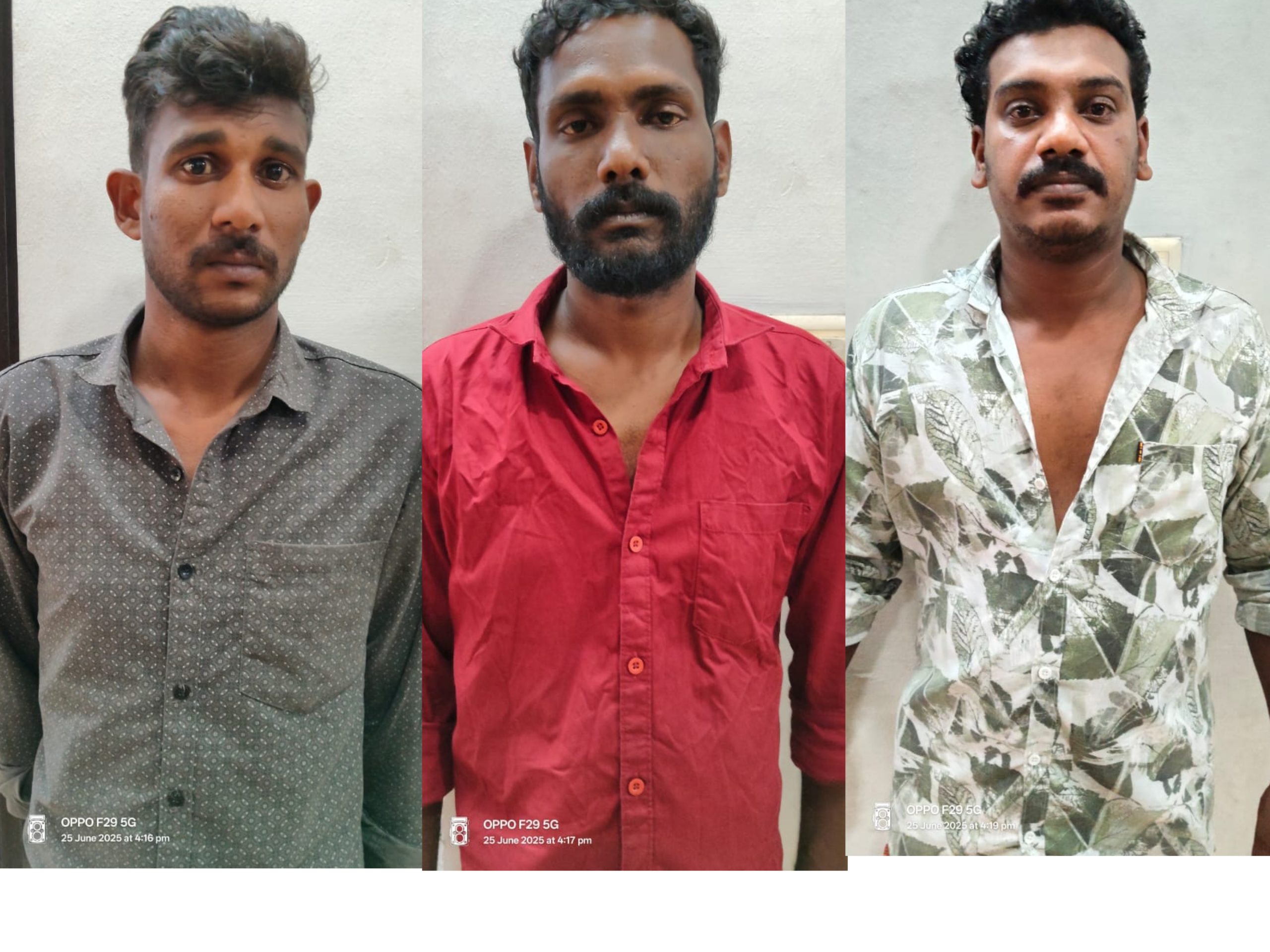 - സനീഷ് AGE 38 S/O സണ്ണി , കാരിവേലി പറമ്പിൽ , ഇരവിമംഗലം മാഞ്ഞൂർ , 2. അനൂപ് AGE 30 / 25 മുളക്കൽ വീട് , ഉണ്ണി ഈശോ പള്ളി ഭാഗം , ആർപ്പൂക്കര വില്ലേജ് ,3. നൗഫൽ S/o നാസർ, തടത്തിൽ പറമ്പിൽ ആർപ്പൂക്കര , കോട്ടയം എന്നിവരെയാണ് പോലീസ് അറസ്റ് ചെയ്തത്.