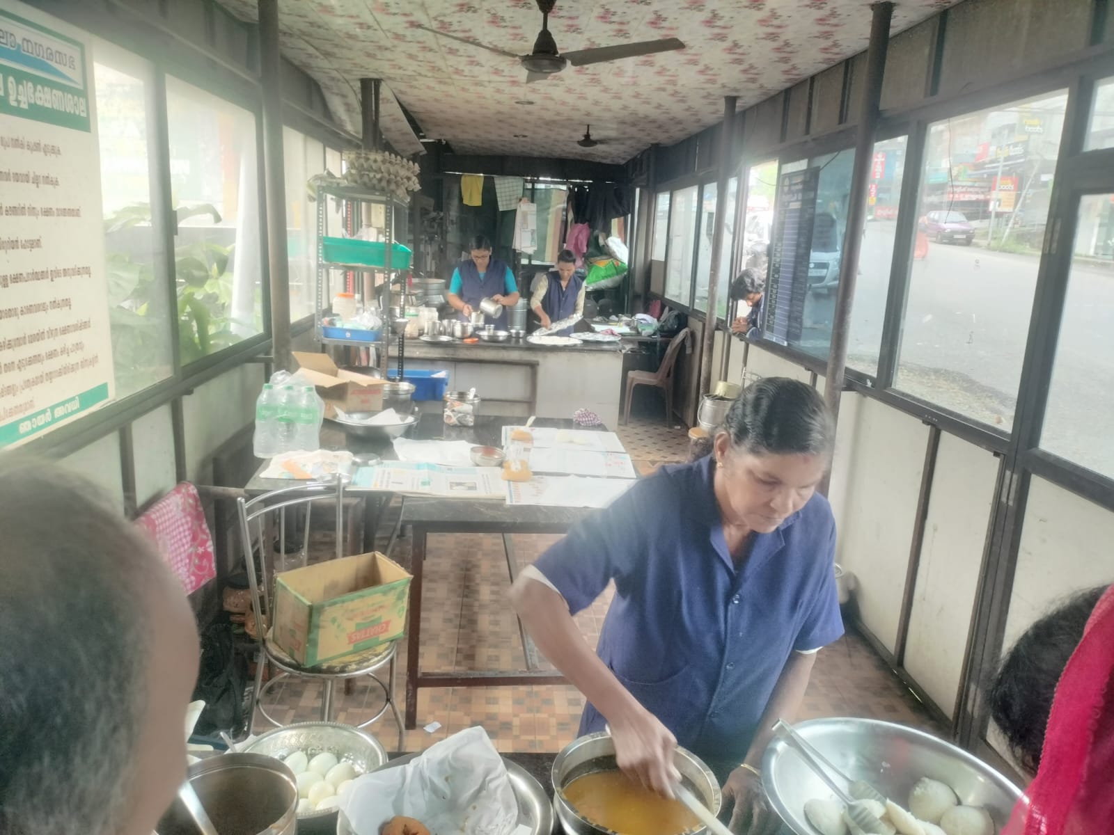ഞങ്ങളെന്തു ചെയ്യും ;ആകെ രണ്ട് ഇഡ്ഡലി ചെമ്പല്ലേ ഇവിടെയുള്ളൂ .ആകെ മൂന്ന് കുടുംബശ്രീക്കാരാണ് ഉള്ളത് .അവർക്കാണെങ്കിൽ നിന്ന് തിരിയാൻ സമയമില്ല .രാവിലത്തെ തിക്കും തിരക്കും കഴിയുമ്പോൾ ഒൻപതു മണിയാകും.ഇഡ്ഡലി എന്ന് പറഞ്ഞാൽ ആവി പറക്കുന്ന ഇഡ്ഡലിയാണ് അത് കൊണ്ട് തന്നെ ആറെണ്ണം ഒക്കെ അകത്താക്കുന്നവരും ഉണ്ട് .ഇന്നൊരു വീരൻ പറഞ്ഞത് തലേ ദിവസമേ ഓൺലൈനിൽ ബുക്ക് ചെയ്യാൻ അനുവദിക്കണം എന്നായിരുന്നു .ഉച്ചയ്ക്ക് ഊണുണ്ട് 35 രൂപാ .പക്ഷെ അതിന് വനിതകളാണ് കൂടുതലായും എത്തുന്നത് .ചോറും ,സാമ്പാറും അച്ചാറും ഒരു തോരനും ഉണ്ട് .