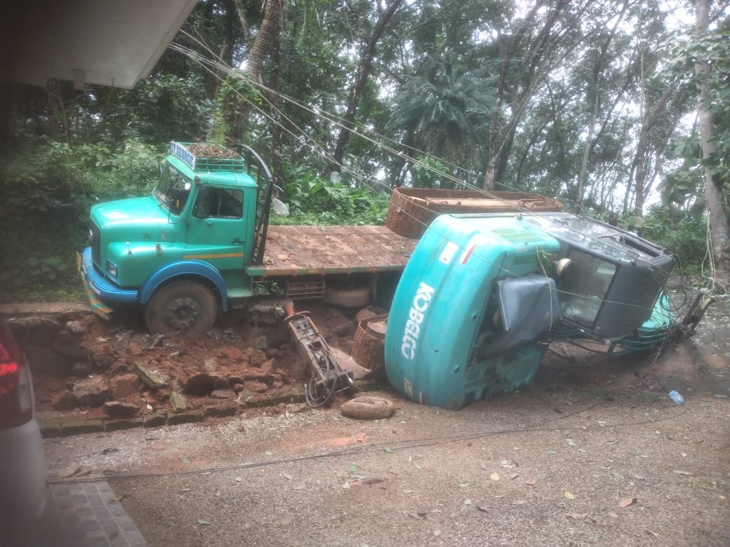 . അപകടത്തിൽപ്പെടാതെ വീട്ടുകാർ അത്ഭുതകരമായി രക്ഷപെടുകയായിരുന്നു. ലോറി ചരിഞ്ഞെങ്കിലും മറിയാതെ നിന്നു.