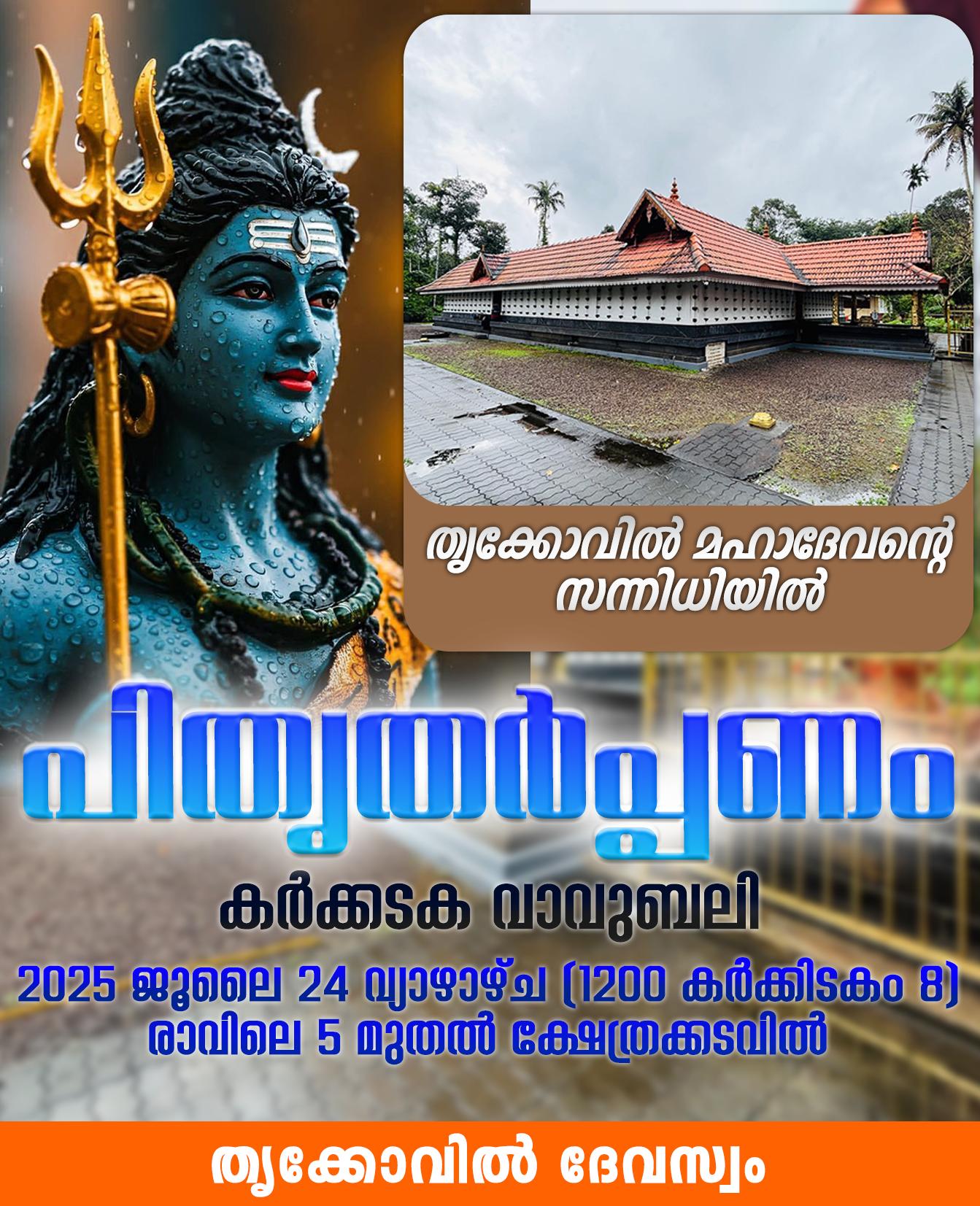 2025 ജൂലൈ 24-ാം തീയതി വ്യാഴാഴ്ച പുലർച്ചെ 5 മണിമുതൽ ക്ഷേത്രക്കടവിൽ ബലിതർപ്പണം നടത്താനുള്ള സൗകര്യം ഒരുക്കിയിട്ടുണ്ട്. വിശ്വാസികൾക്ക് തിലഹവനം, വിഷ്ണുപൂജ, സയൂജപൂജ, പിതൃനമസ്കാരം എന്നിവയ്ക്കും പ്രത്യേക സൗകര്യം ഉണ്ടായിരിക്കുന്നതാണ്.
