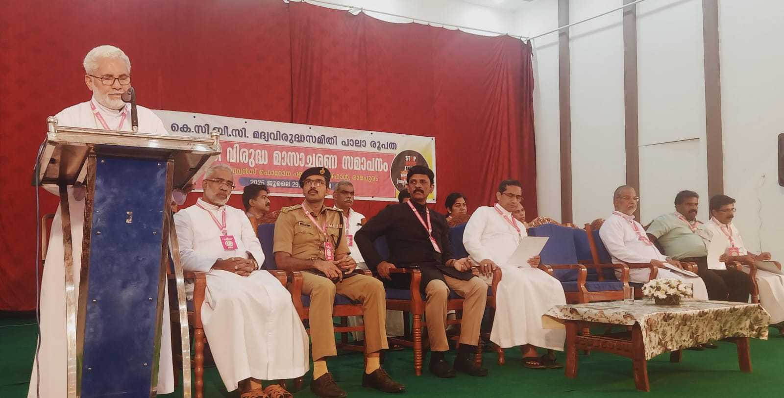 പാലാ: കെ.സി.ബി.സി. മദ്യവിരുദ്ധ സമിതിയുടെ നേതൃത്വത്തിൽ പാലാ രൂപതയിൽ നടത്തിയ ലഹരിവിരുദ്ധ മാസാചരണത്തിന്റെ സമാപനച്ചടങ്ങ് രാമപുരം സെന്റ് അഗസ്റ്റിൻസ് ഫൊറോന ചർച്ച പാരിഷ് ഹാളിൽ നടന്നു. മാർ ആഗസ്തീനോസ് കോളേജിലെയും സെന്റ് അഗസ്റ്റിൻസ് ഹയർ സെക്കണ്ടറി സ്കൂളിലെയും അധ്യാപകരും അനധ്യാപകരും വിദ്യാർത്ഥികളും പൊതുജനങ്ങളും പരിപാടിയിൽ പങ്കെടുത്തു.