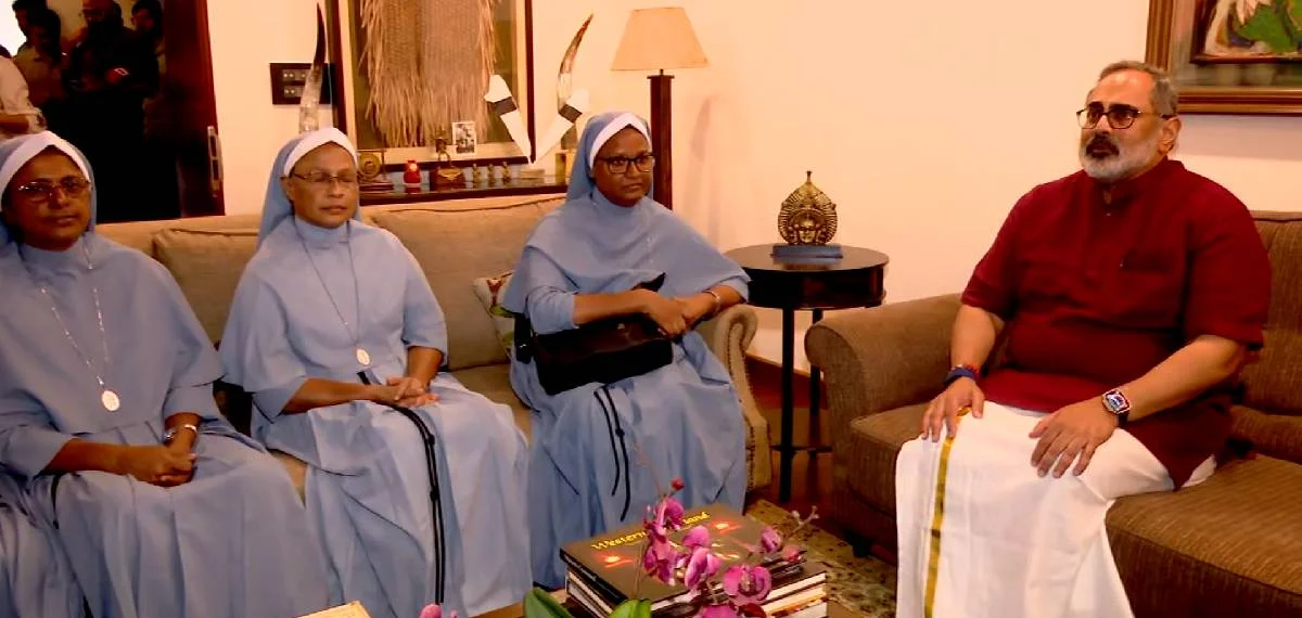 രാജീവ് ചന്ദ്രശേഖരനെ അന്ന് നേരിട്ട് കാണാന് കഴിഞ്ഞിരുന്നില്ല, അതുകൊണ്ടാണ് ഇപ്പോള് ഡല്ഹിയിലേക്ക് പോയത് എന്നും കന്യാസ്ത്രീകളുടെ കുടുംബം വ്യക്തമാക്കി. കോടതിയിലിരിക്കുന്ന കേസില് അദ്ദേഹത്തിന് മറ്റൊന്നും ചെയ്യാനില്ലെങ്കിലും തങ്ങള്ക്കൊപ്പം തന്നെയുണ്ടെന്നാണ് വിശ്വാസമെന്നും കൂട്ടിച്ചേര്ത്തു.
