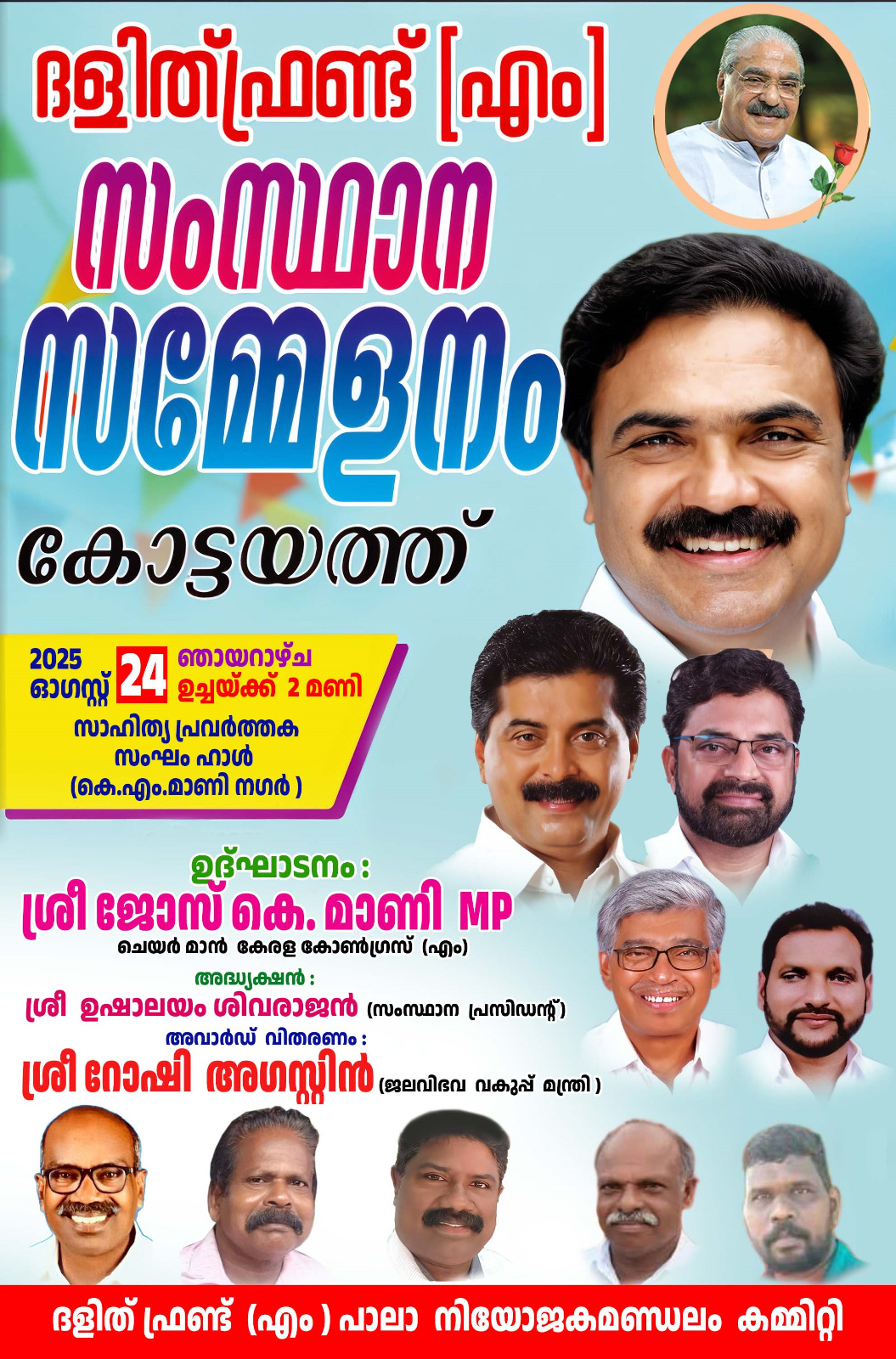 എം എൽ എ, മാരായ അഡ്വ :ജോബ് മൈക്കിൾ, അഡ്വ:സെബാസ്റ്റ്യൻ കുളത്തുങ്കൽ, അഡ്വ :പ്രമോദ് നാരായണൻ, ദളിത് ഫ്രണ്ട് (എം)സംസ്ഥാന ചുമതലക്കാരനും പാർട്ടി ട്രഷറർ ബേബി ഉഴത്തുവാൽ, കേരള കോൺഗ്രസ് എം കോട്ടയം ജില്ലാ പ്രസിഡന്റ് പ്രൊഫ:ലോപ്പസ് മാത്യു, തുടങ്ങി പാർട്ടിയുടെയും,ദളിത് ഫ്രണ്ട് (എം)ന്റെയും സംസ്ഥാന നേതാക്കൾ പങ്കെടുക്കും. സമ്മേളനം പട്ടിക ജാതി,വർഗ്ഗ,ദളിത് ക്രൈസ്തവ പ്രശ്നങ്ങൾ ചർച്ച ചെയ്യുമെന്ന് നേതാക്കൾ അറിയിച്ചു.