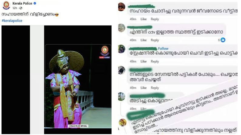 കേരള പൊലീസിന്റെ ഓണാശംസ നേര്ന്നുകൊണ്ടുള്ള ഔദ്യോഗിക ഫെയ്സ്ബുക്ക് പോസ്റ്റില് കുന്നംകുളം കസ്റ്റഡി മര്ദനം ഓര്മിപ്പിച്ച് കമന്റുകളുടെ പൂരം. ‘സഹായത്തിന് വിളിച്ചോണം’ എന്ന ക്യാപ്ഷനിലാണ് പൊലീസ് വീഡിയോ പോസ്റ്റ് ചെയ്തത്. എന്ത് ആവശ്യമുണ്ടെങ്കിലും 112ല് വിളിക്കാനാണ് വീഡിയോയില് പറയുന്നത്.
