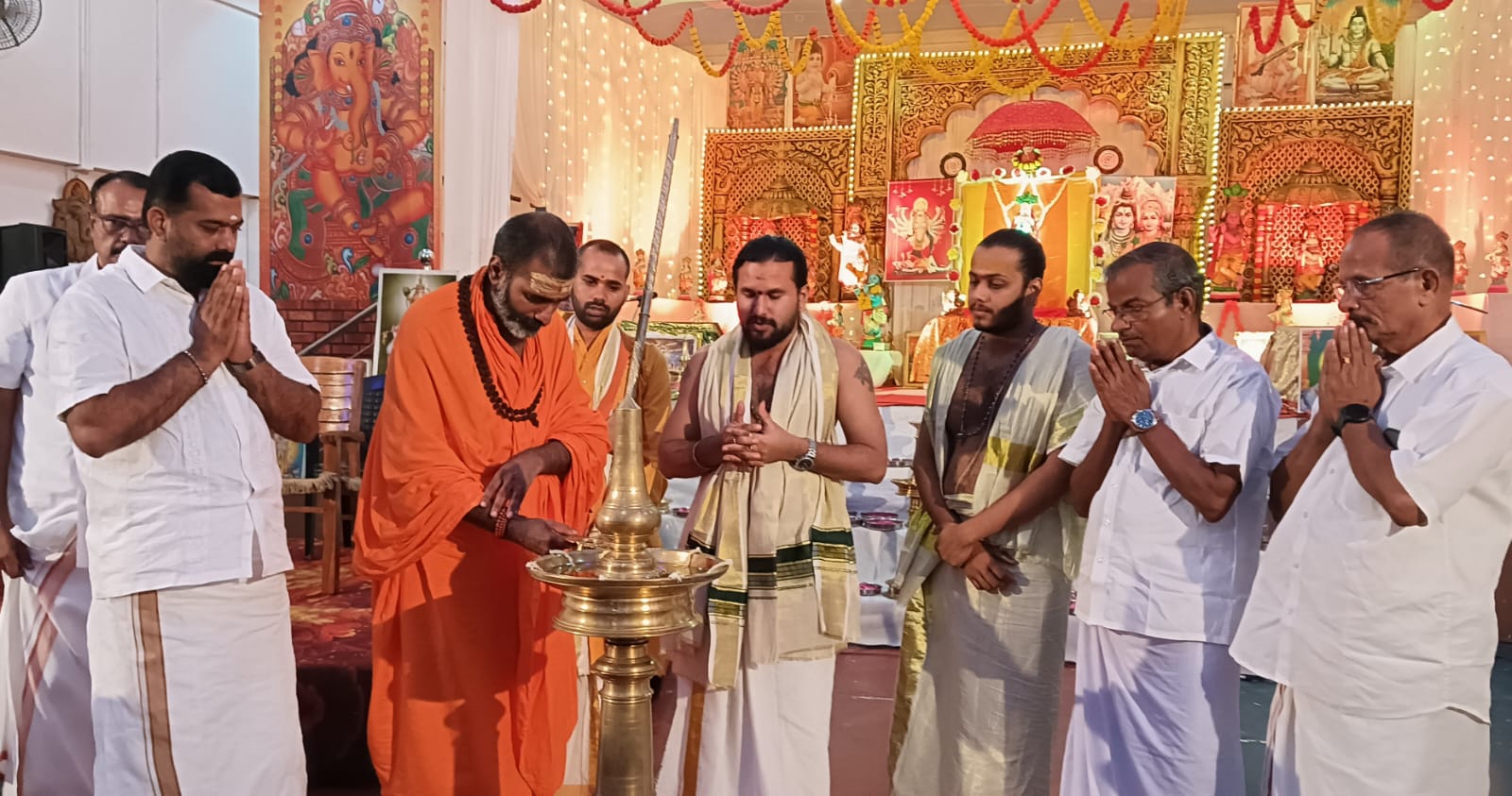 സ്ത്രീകളും കുട്ടികളുമടങ്ങുന്ന നൂറു കണക്കിന് ഭക്തജനങ്ങൾ താലത്തിൽ നിറ പുഷ്പങ്ങളുമായാണ് സ്വാമികളെ സ്വീകരിച്ചത്.ദേവസ്വം പ്രസിഡന്റ് : കെ എസ് പ്രവീൺ കുമാർ സ്വാമികളുടെ പാദം കഴുകി പൂർണ്ണ കുഭം നൽകി സ്വീകരിച്ചു .തുടർന്ന് മന്ത്രോച്ചാരണങ്ങളോടെ ആഡിറ്റോറിയത്തിലേക്കു ഭക്ത ജനങ്ങൾ സ്വാമികളെ ആനയിച്ചു .തുടർന്ന് സ്വാമികളുടെ അനുഗ്രഹ പ്രഭാഷണവും നടന്നു.