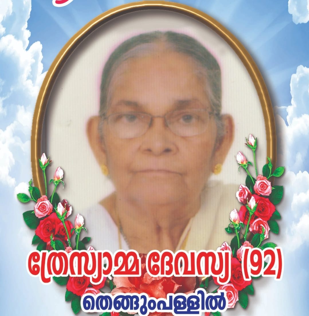 പാലാ: തന്റെ പത്ത് മക്കളുടെ കൂടെ ജീവിച്ച് പേരകുട്ടികളെയും കണ്ട് ; അവരുടെ മക്കളെയും കണ്ട് തെങ്ങുംപള്ളി ത്രേസ്യാമ്മ ചേടത്തി യാത്രയായി തന്റെ പത്ത് മക്കളിൽ സാബു, ബിജു, ബീന എന്നിവർക്ക് മാത്രമേ മക്കളുടെ മക്കൾ ഇല്ലാതുള്ളൂ. ബാക്കി ഏഴുപേർക്കും മക്കളുടെ മക്കൾ ഉണ്ട് .ഇന്നത്തെ കത്തോലിക്കാ സഭയുടെ നിയമ പ്രകാരം വീര മാതാവായി പ്രഖ്യാപിക്കാവുന്ന അമ്മയാണ് 92 ൽ വിട വാങ്ങിയ ത്രേസ്യാമ്മച്ചി.