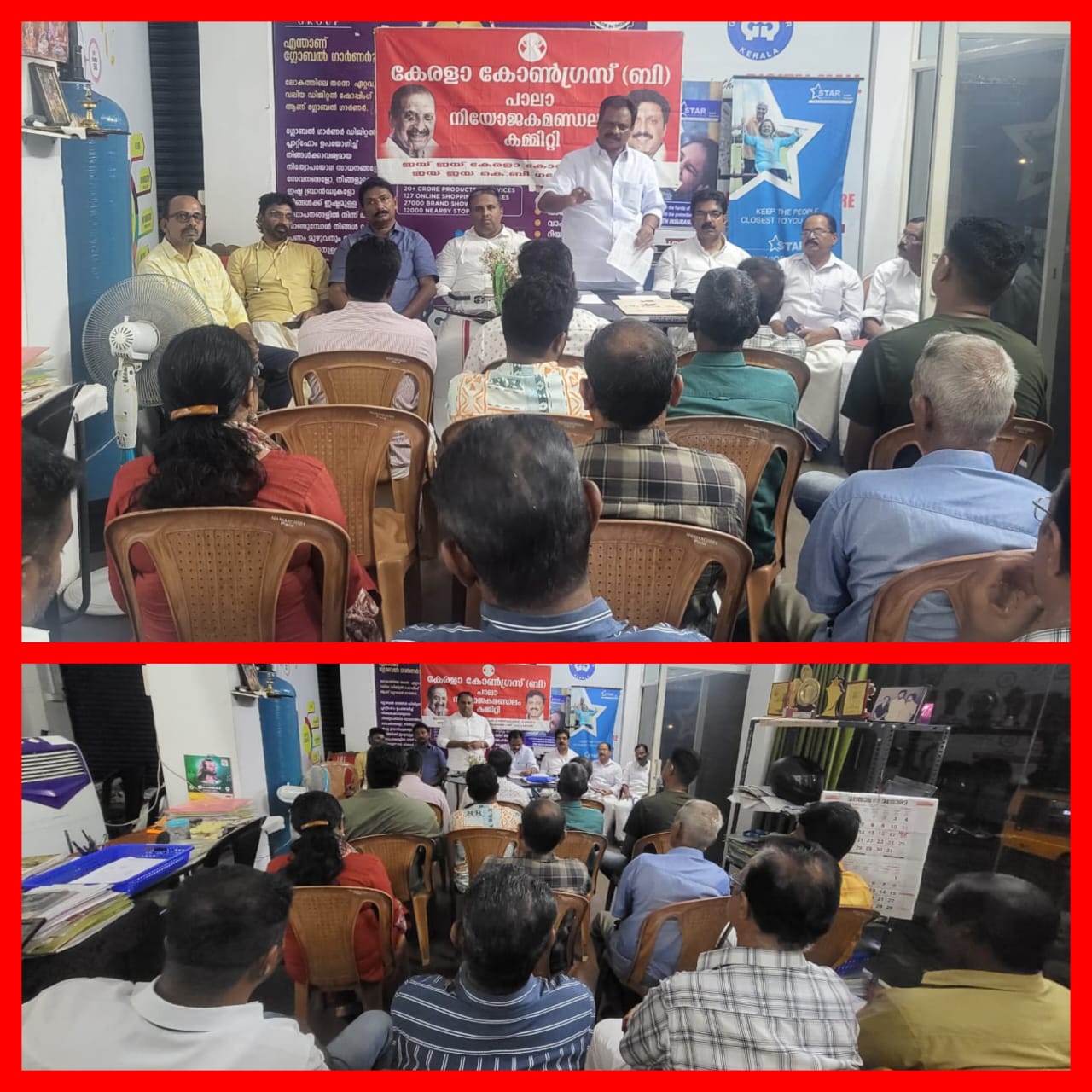പാലാ നിയോജക മണ്ഡലത്തിലെ കേരളാ കോൺഗ്രസ് ബി കമ്മറ്റി ഇന്ന്  നിയോജക മണ്ഡലം പ്രസിഡണ്ട് സതീഷ് ബാബുവിന്റെ അധ്യക്ഷതയിൽ ചേർന്നു. യോഗത്തിൽ കോട്ടയം ജില്ലയുടെ ചുമതലയുള്ള സംസ്ഥാന സ്റ്റിയറിംഗ് കമ്മിറ്റിയംഗം മോനച്ചൻ വടകോട്,കോട്ടയം ജില്ലാ പ്രസിഡണ്ട്  പ്രശാന്ത് നന്ദകുമാർ,സംസ്ഥാന സെക്രട്ടറി  സാജൻ ആലക്കളം,സംസ്ഥാന ജോയിൻ്റ് സെക്രട്ടറി  ഔസേപ്പച്ചൻ ഓടയ്ക്കൽ,ജില്ലാ ജനറൽ സെക്രട്ടറി  അനസ്ബി.നിയോജകമണ്ഡലം ജനറൽ സെക്രട്ടറി  ശശികുമാർ കെ എൻ ,നിയോജക മണ്ഡലത്തിലെ മണ്ഡലം പ്രസിഡണ്ട് മാർ, നിയോജക മണ്ഡലം കമ്മിറ്റി അംഗങ്ങൾ, പാർട്ടിയുടെ പോഷക സഘടന ഭാരവാഹികൾ എന്നിവർ പങ്കെടുത്തു .