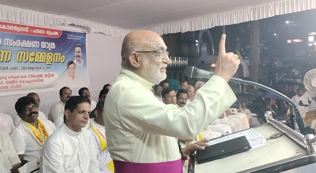 പാലാ :അവകാശങ്ങൾ സംരക്ഷിക്കാൻ രാഷ്ട്രീയ പാർട്ടി രൂപീകരിക്കണമെന്ന് പറയുന്നില്ലെങ്കിലും;വോട്ടുകൾ മൊത്തമായി ഇനി ഒരു മുന്നണിക്കും നൽകില്ലെന്ന് ആർച്ച് ബിഷപ്പ് മാർ റാഫേൽ തട്ടിൽ അസാന്നിദ്ധമായി പ്രഖ്യാപിച്ചു .പാലായിൽ എത്തിച്ചേർന്ന എ കെ സി സി യുടെ ഗ്ലോബൽ പ്രസിഡണ്ട് പ്രൊഫസർ രാജീവ് കൊച്ചുപറമ്പിലിൻറെ നേതൃത്വത്തിലുള്ള അവകാശ സംരക്ഷണ യാത്രയ്ക്ക് പാലായിൽ നൽകിയ സ്വീകരണ യോഗം ഉദ്ഘാടനം ചെയ്തു കൊണ്ട് സംസാരിക്കുകയായിരുന്നു മാർ റാഫേൽ തട്ടിൽ പിതാവ്.