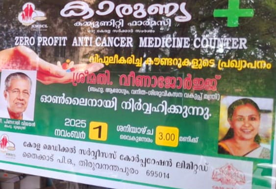 പാലാ കെ.എം.മാണി സ്മാരക ഗവ: ജനറൽ ആശുപത്രിയിൽ പ്രവർത്തിക്കുന്ന കാരുണ്യാ ഫാർമസി വഴിയാക്കും തുഛമായ നിരക്കിലുള്ള മരുന്നുകൾ വിതരണം ചെയ്യുക .ഉയർന്ന വിലയുള്ള 247 ബ്രാൻ്റഡ് ഓങ്കോളജി മരുന്നുകളാണ് ലാഭം എടുക്കാതെ രോഗികൾക്ക് ലഭ്യമാക്കുക.